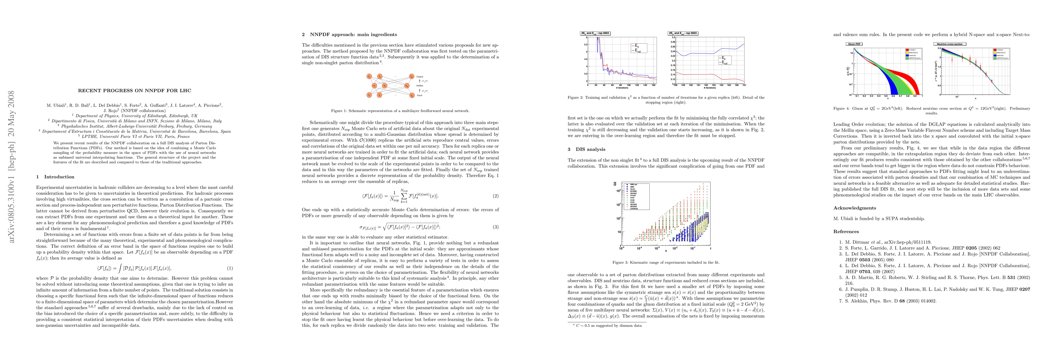 The NNPDF collaboration has advanced its Parton Distribution Functions (PDFs) using a Monte Carlo sampling combined with neural networks, offering a novel approach compared to traditional methods, as demonstrated in their full DIS analysis for the LHC.
