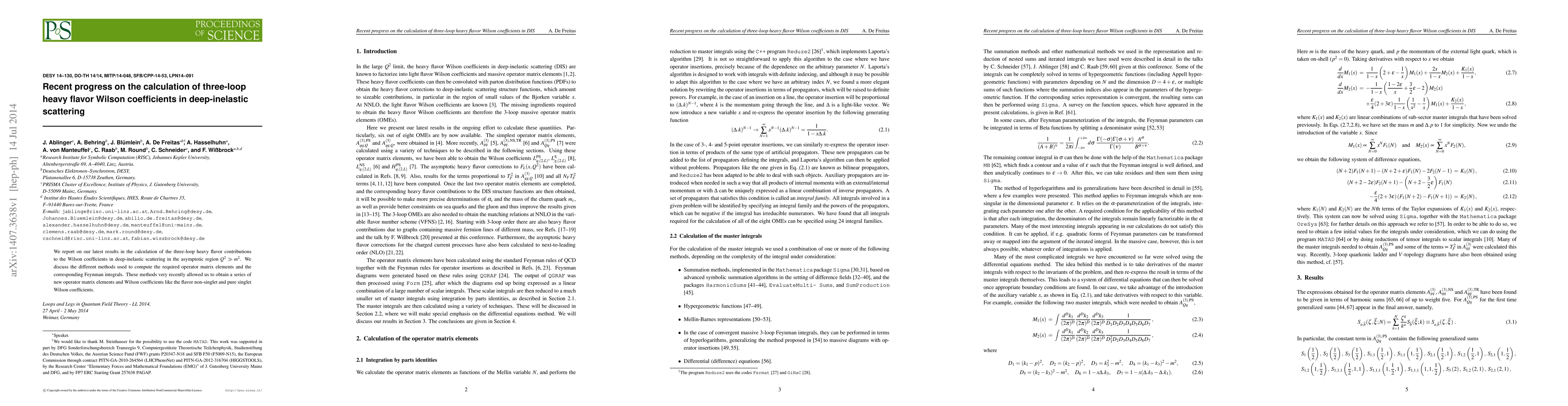 We report on our latest results in the calculation of the three-loop heavy flavor contributions to the Wilson coefficients in deep-inelastic scattering in the asymptotic region $Q^2 \gg m^2$. We discuss the different methods used to compute the required operator matrix elements and the corresponding Feynman integrals. These methods very recently allowed us to obtain a series of new operator matrix elements and Wilson coefficients like the flavor non-singlet and pure singlet Wilson coefficients.