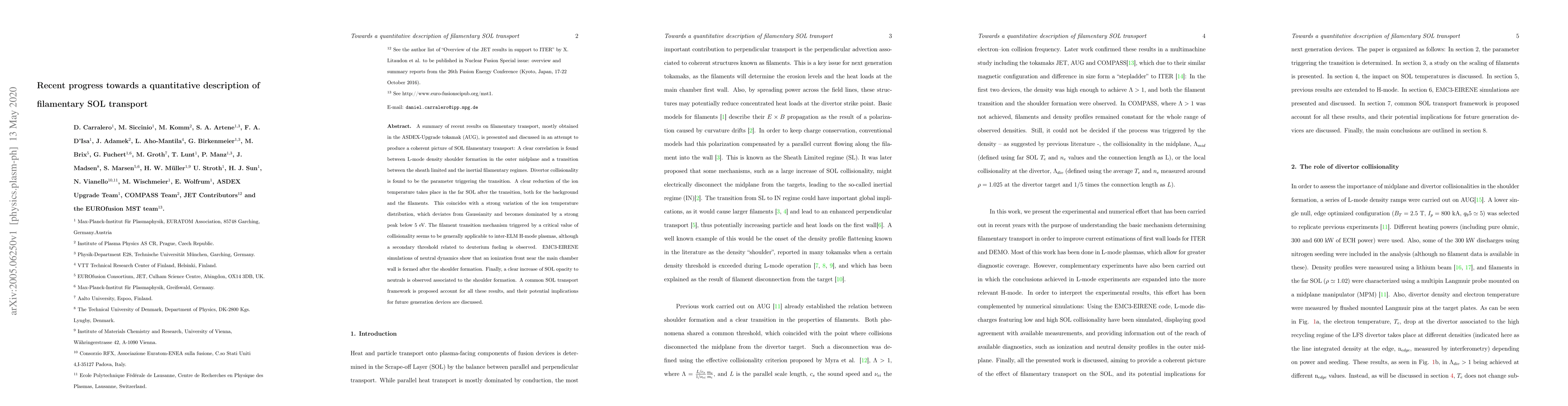 A summary of recent results on filamentary transport, mostly obtained in the ASDEX-Upgrade tokamak (AUG), is presented and discussed in an attempt to produce a coherent picture of SOL filamentary transport: A clear correlation is found between L-mode density shoulder formation in the outer midplane and a transition between the sheath limited and the inertial filamentary regimes. Divertor collisionality is found to be the parameter triggering the transition. A clear reduction of the ion temperature takes place in the far SOL after the transition, both for the background and the filaments. This coincides with a strong variation of the ion temperature distribution, which deviates from Gaussianity and becomes dominated by a strong peak below $5$ eV. The filament transition mechanism triggered by a critical value of collisionality seems to be generally applicable to inter-ELM H-mode plasmas, although a secondary threshold related to deuterium fueling is observed. EMC3-EIRENE simulations of neutral dynamics show that an ionization front near the main chamber wall is formed after the shoulder formation. Finally, a clear increase of SOL opacity to neutrals is observed associated to the shoulder formation. A common SOL transport framework is proposed account for all these results, and their potential implications for future generation devices are discussed.