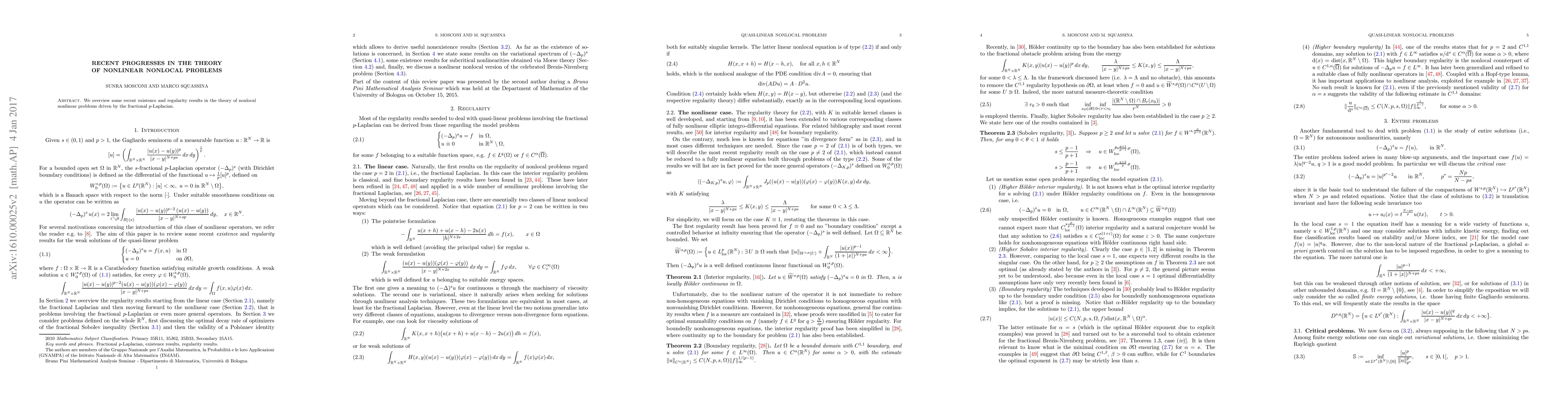 We overview some recent existence and regularity results in the theory of nonlocal nonlinear problems driven by the fractional $p$-Laplacian.