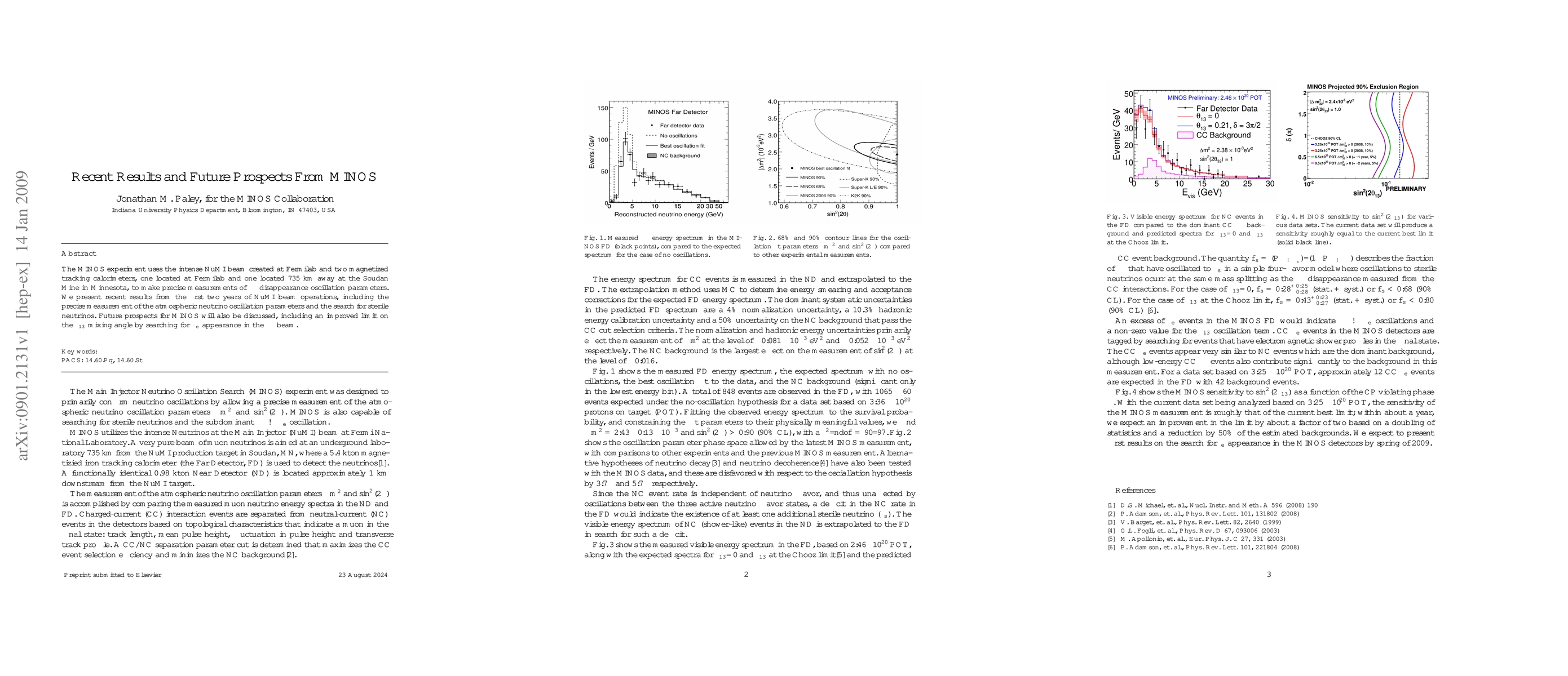 The MINOS experiment measures $\nu_\mu$ disappearance to determine atmospheric neutrino oscillation parameters and searches for sterile neutrinos. Future plans include an improved limit on the $\theta_{13}$ mixing angle by detecting $\nu_e$ appearance.