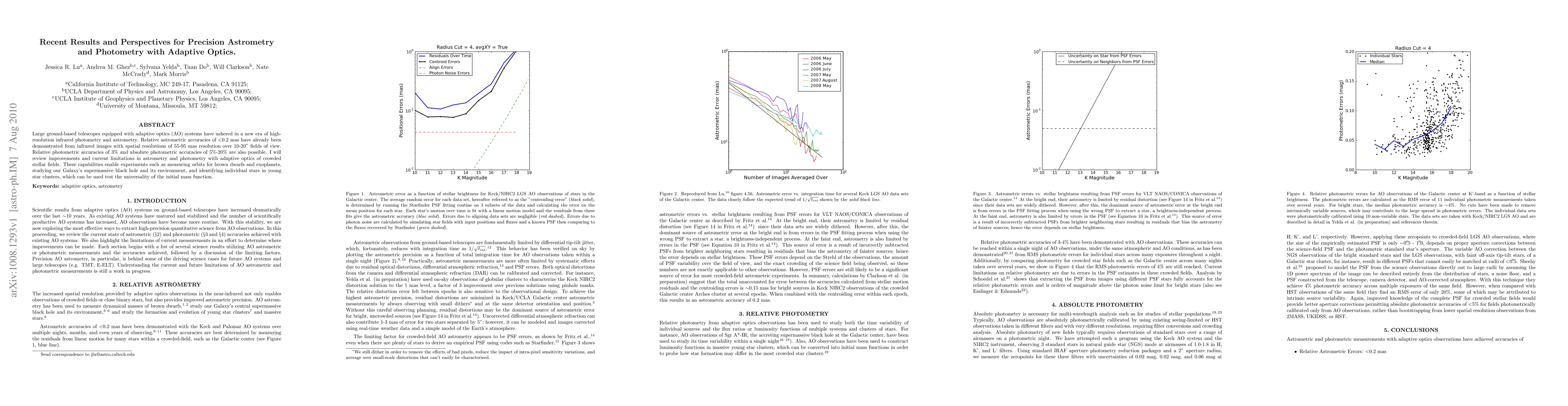 This paper reviews advancements in precision astrometry and photometry enabled by adaptive optics in large ground-based telescopes, achieving sub-milliarcsecond astrometric accuracies and 3% relative photometric accuracies. It discusses the potential for studying exoplanets, the Galactic center, and young star clusters, despite current limitations.