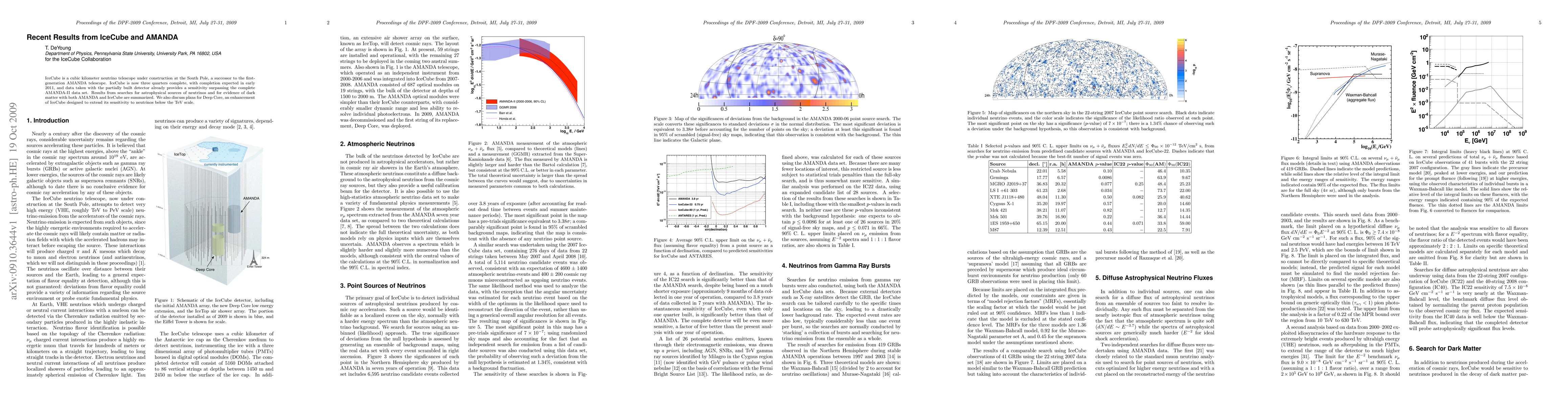 This paper summarizes recent findings from the AMANDA and IceCube neutrino telescopes, highlighting the enhanced sensitivity of the partially constructed IceCube over the complete AMANDA-II data set. It also outlines plans for the Deep Core extension to further improve IceCube's detection capabilities for low-energy neutrinos.