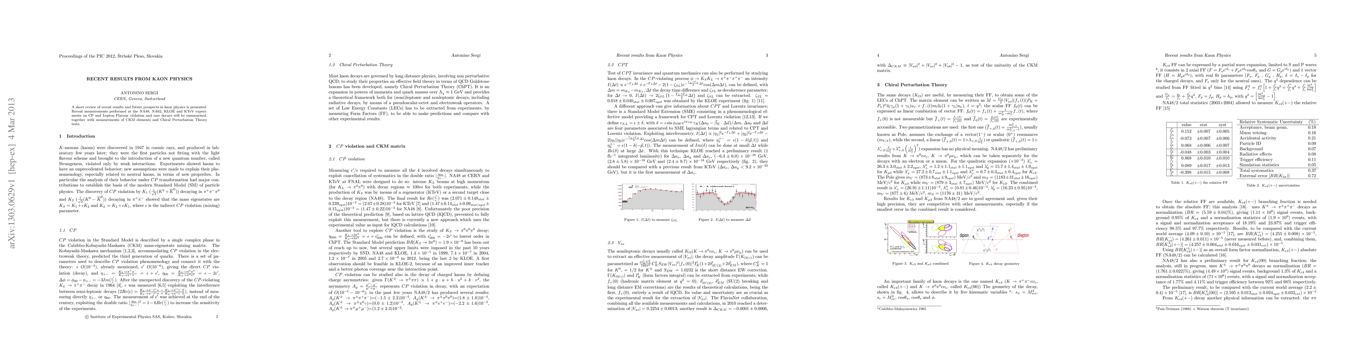 Summary: This paper reviews recent findings from kaon physics experiments, including CP and Lepton Flavour violation studies, rare decay measurements, and tests of CKM elements and Chiral Perturbation Theory, highlighting advancements and future research directions.