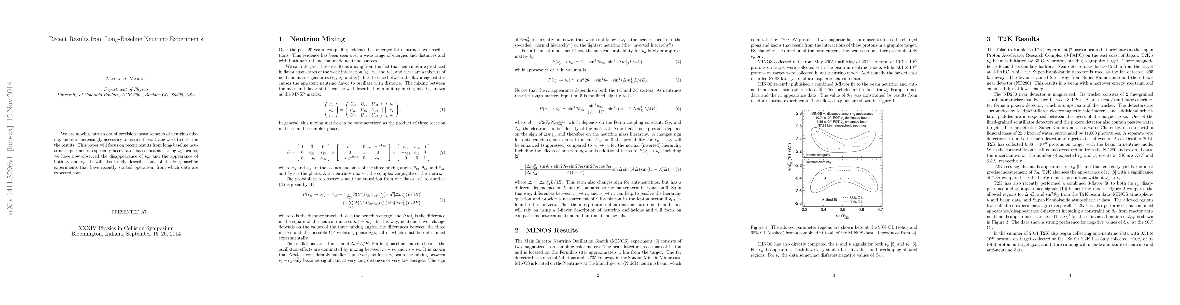 This paper reviews recent findings from long-baseline neutrino experiments, particularly focusing on the observation of $\nu_{\mu}$ disappearance and the appearance of $\nu_{e}$ and $\nu_{\tau}$ using accelerator-based beams, emphasizing the necessity of a 3-flavor framework for precision measurements. It also mentions upcoming long-baseline experiments expected to provide new data.