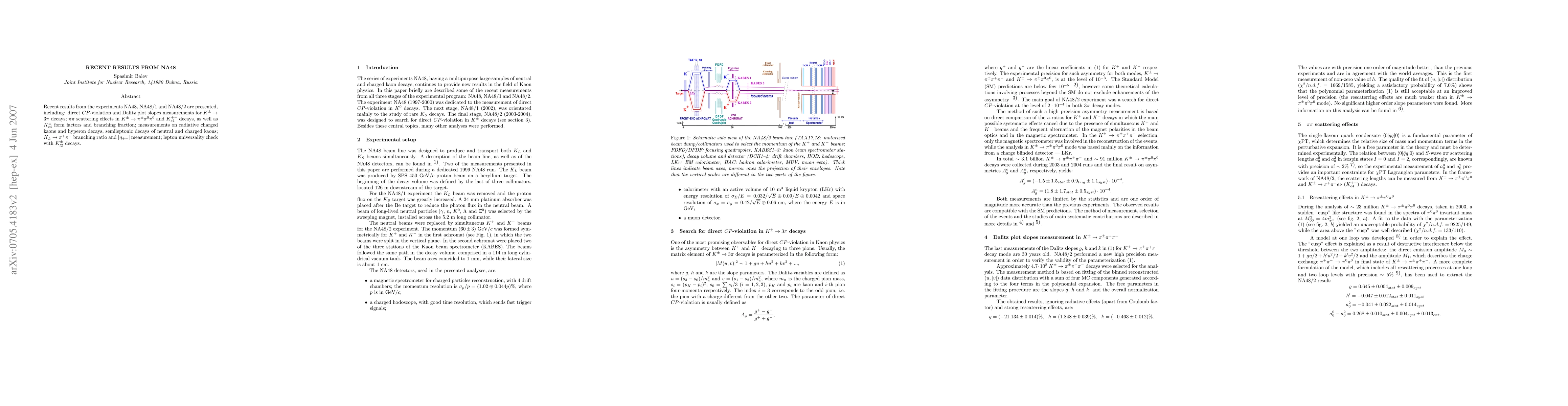 The NA48 experiments report findings on direct CP-violation and Dalitz plot slopes in K+ decays to three pions, effects of pi-pi scattering in K+ decays to four pions and a photon, and measurements of Ke4 form factors and branching fractions. Additionally, the study includes analyses of radiative kaon and hyperon decays, semileptonic kaon decays, KL branching ratios, and a check of lepton universality in Kl2 decays.