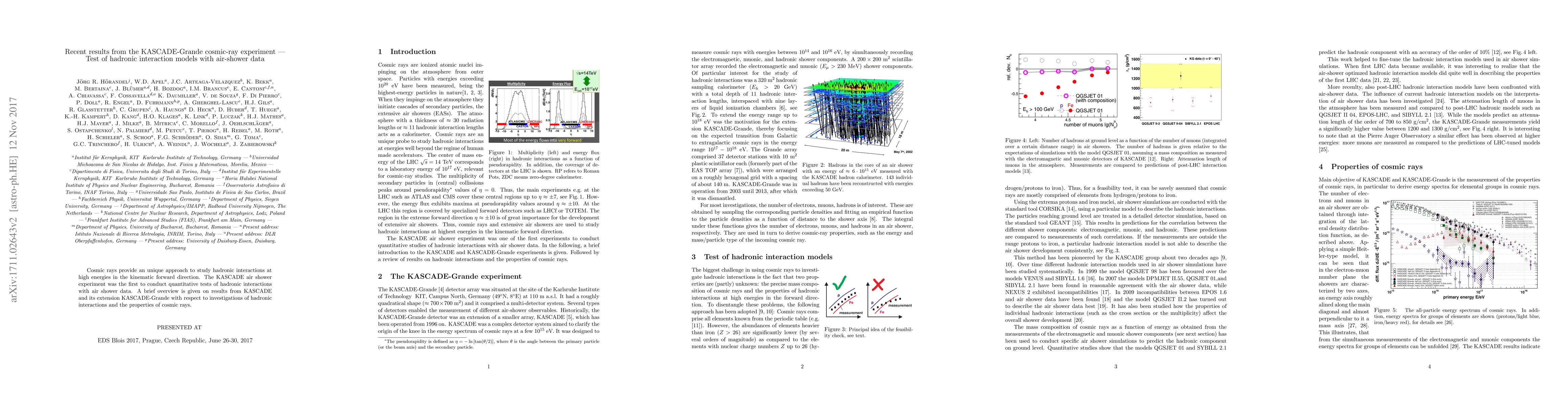 Summary: The KASCADE-Grande experiment provides insights into high-energy hadronic interactions through detailed air-shower data analysis. The study tests various hadronic interaction models and contributes to understanding cosmic ray properties.