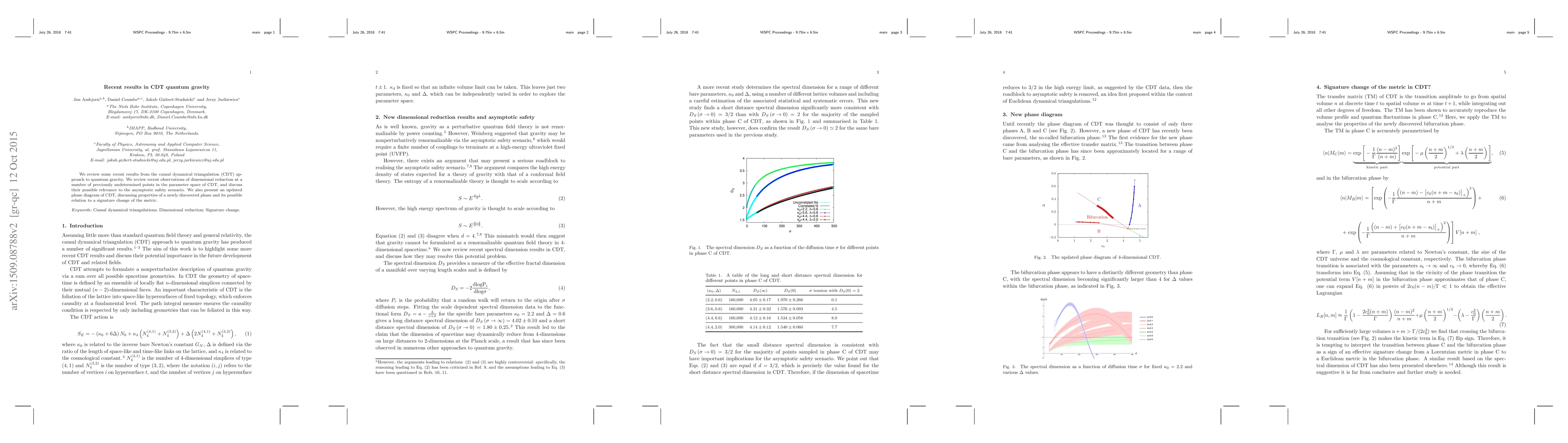 We review some recent results from the causal dynamical triangulation (CDT) approach to quantum gravity. We review recent observations of dimensional reduction at a number of previously undetermined points in the parameter space of CDT, and discuss their possible relevance to the asymptotic safety scenario. We also present an updated phase diagram of CDT, discussing properties of a newly discovered phase and its possible relation to a signature change of the metric.