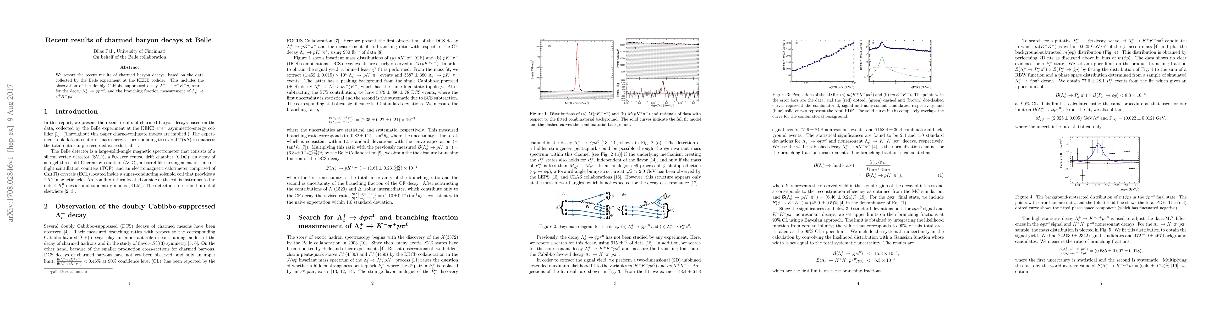 Summary: The Belle experiment at KEKB has reported new findings on charmed baryon decays, including the observation of the doubly Cabibbo-suppressed decay $\Lambda_c^+\to\pi^-K^+p$ and searches for $\Lambda_c^+\to\phi p \pi^0$, along with a measurement of the branching fraction for $\Lambda_c^+\to\pi^+K^-p\pi^0$.