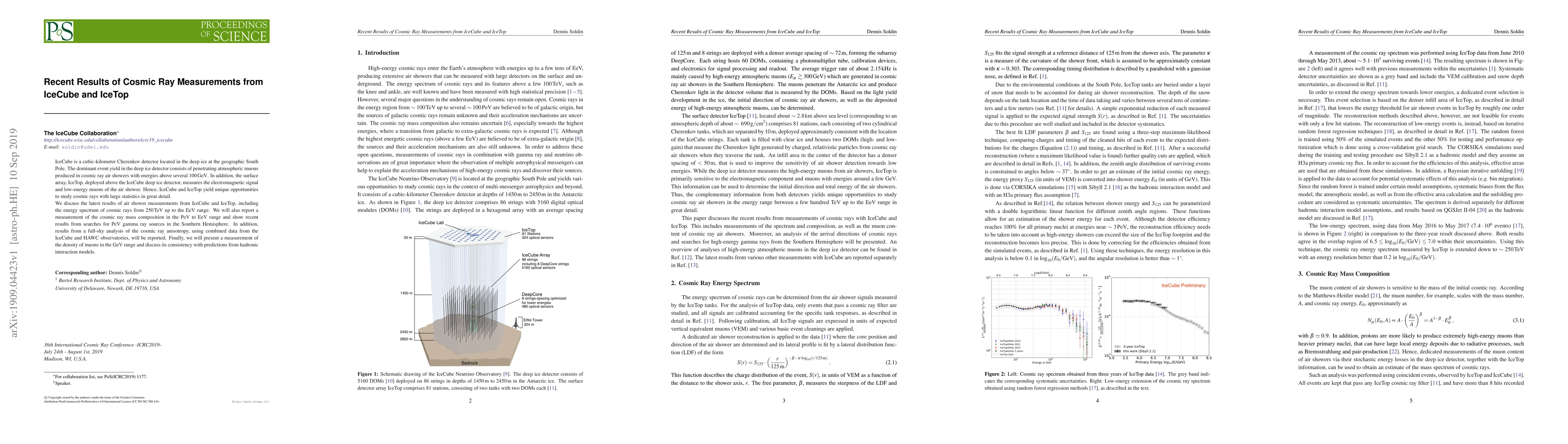 This paper summarizes recent findings from IceCube and IceTop, detailing the energy spectrum of cosmic rays up to the EeV range, the mass composition of cosmic rays in the PeV to EeV range, and results from searches for PeV gamma ray sources. It also reports on cosmic ray anisotropy analysis combining IceCube and HAWC data.