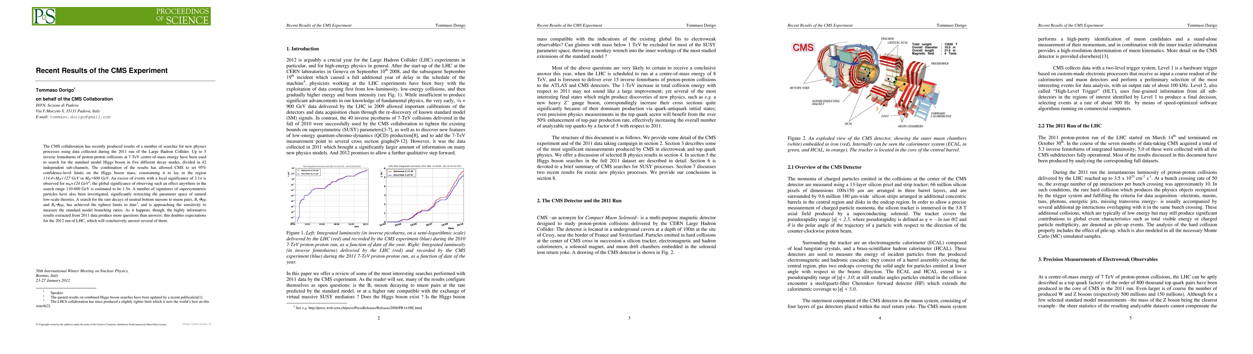 The CMS experiment has set 95% confidence-level limits on the Higgs boson mass, ruling out most values above 127 GeV and below 114.4 GeV, while observing a possible signal at 124 GeV.