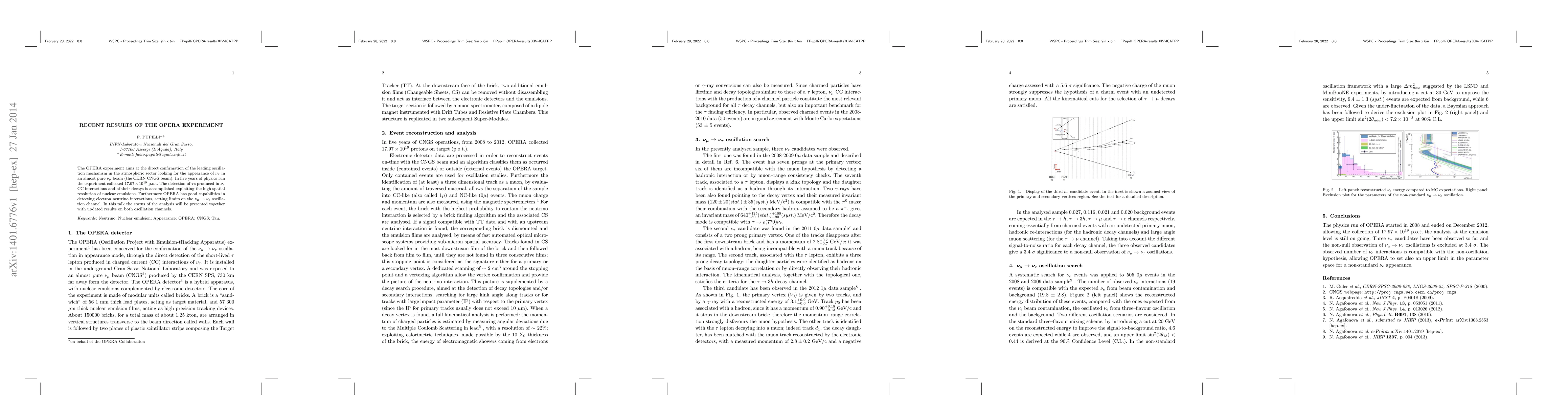 The OPERA experiment aims at the direct confirmation of the leading oscillation mechanism in the atmospheric sector looking for the appearance of $\nu_{\tau}$ in an almost pure $\nu_{\mu}$ beam (the CERN CNGS beam). In five years of physics run the experiment collected $17.97 \times 10^{19}$ p.o.t. The detection of $\tau$s produced in $\nu_{\tau}$ CC interactions and of their decays is accomplished exploiting the high spatial resolution of nuclear emulsions. Furthermore OPERA has good capabilities in detecting electron neutrino interactions, setting limits on the $\nu_{\mu} \rightarrow \nu_{e}$ oscillation channel. In this talk the status of the analysis will be presented together with updated results on both oscillation channels.
