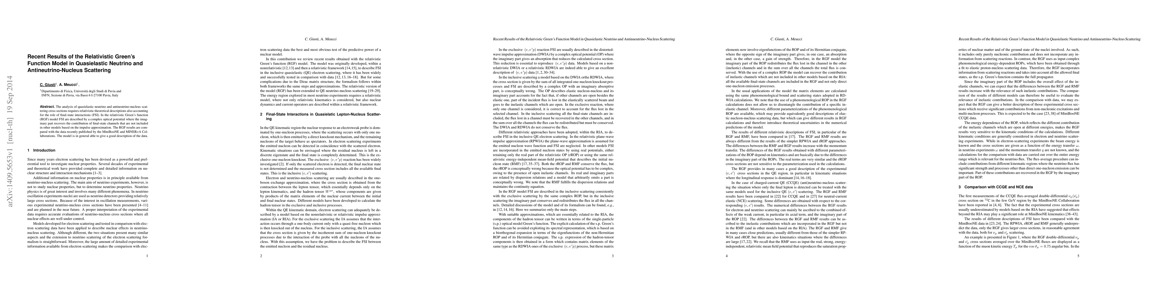 The relativistic Green's function model effectively describes quasielastic neutrino and antineutrino-nucleus scattering, accounting for final-state interactions through a complex optical potential. The model's results compare favorably with recent data from the MiniBooNE and MINER$\nu$A Collaborations.