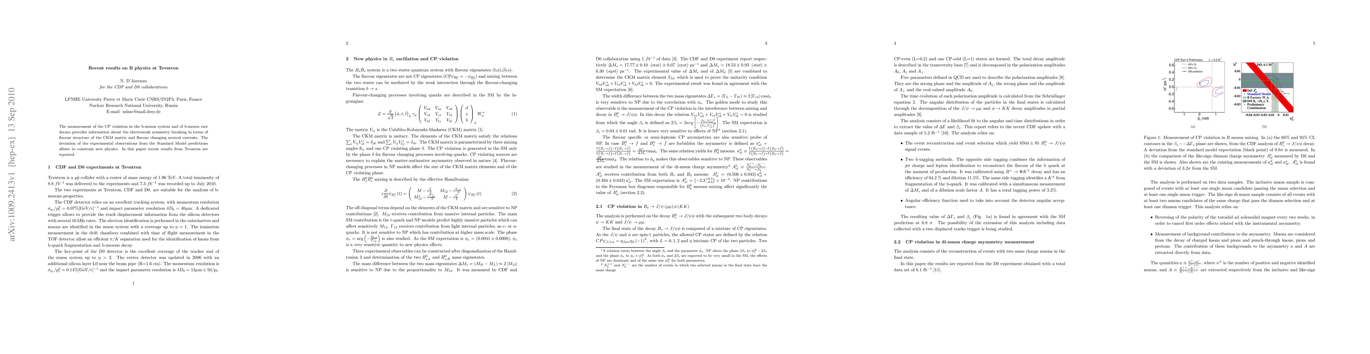 The measurement of the CP violation in the b-meson system and of b-meson rare decays provides information about the electroweak symmetry breaking in terms of flavour structure of the CKM matrix and flavour changing neutral currents. The deviation of the experimental observations from the Standard Model predictions allows to constrain new physics. In this paper recent results from Tevatron are reported.