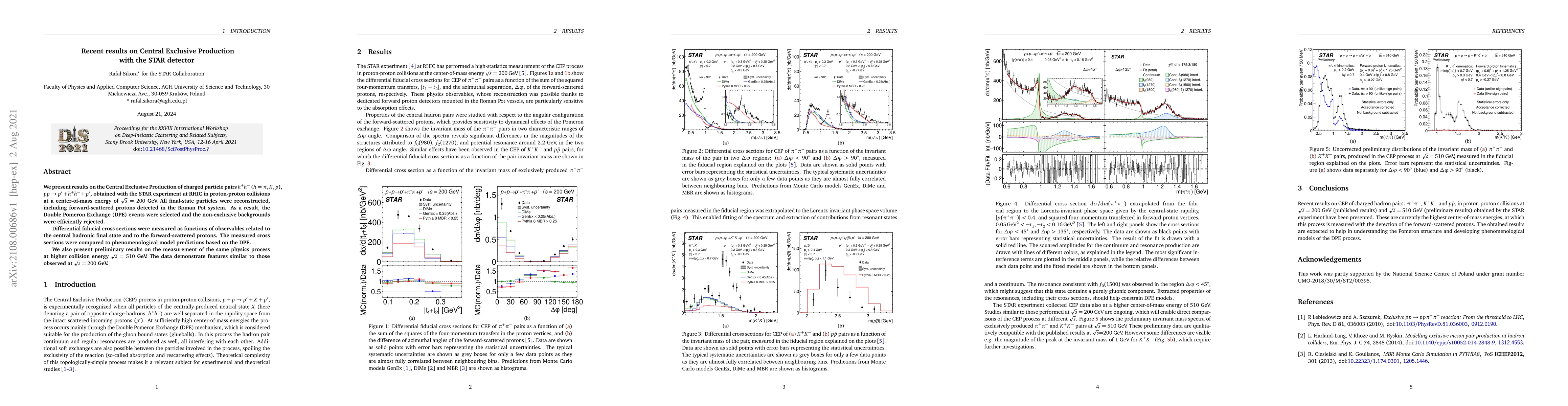 The STAR experiment at RHIC measured the Central Exclusive Production of charged particle pairs in proton-proton collisions at $\sqrt{s} = 200$ GeV, revealing differential cross sections consistent with Double Pomeron Exchange predictions. Preliminary results at $\sqrt{s} = 510$ GeV show similar features.