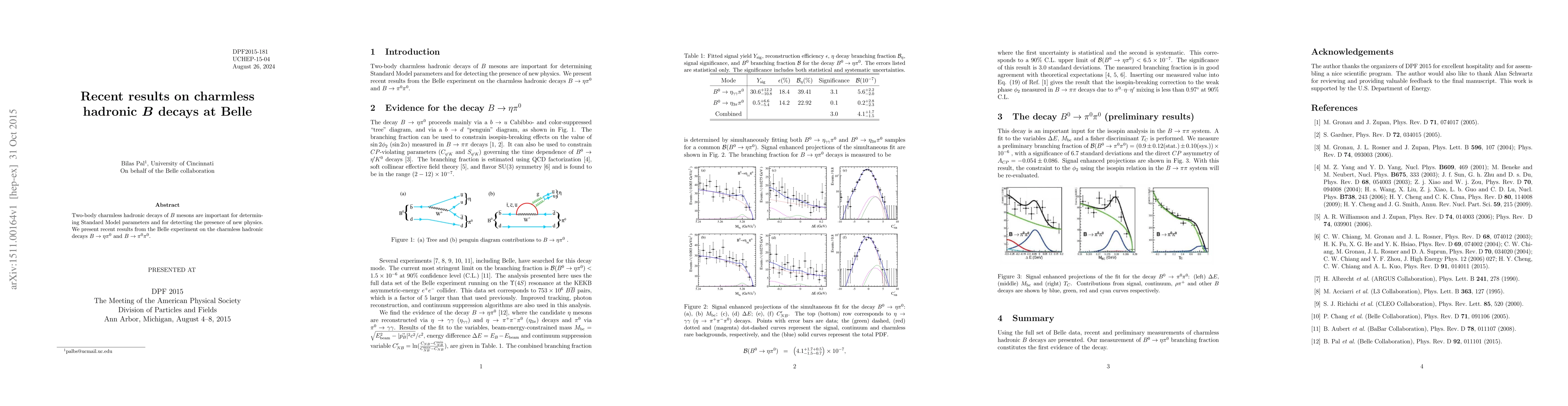 This paper reports new findings from the Belle experiment on two-body charmless hadronic decays of $B$ mesons, specifically $B\rightarrow \eta \pi^0$ and $B\rightarrow \pi^0 \pi^0$, crucial for understanding Standard Model parameters and potential new physics.