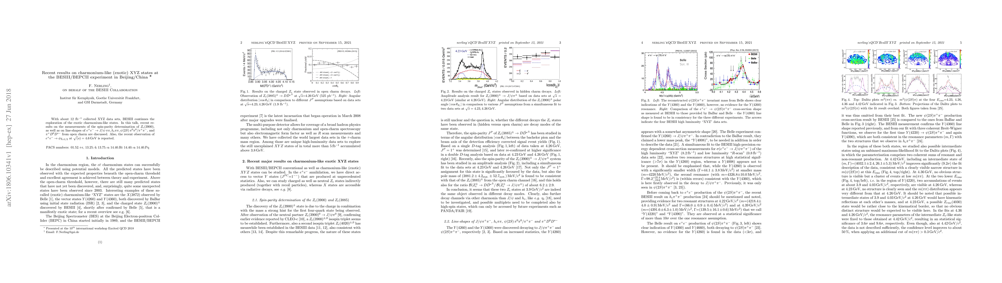 The BESIII experiment at Beijing reports on the spin-parity of $Z_{\rm c}(3900)$ and line-shape measurements of various exotic charmonium-like states produced in $e^+e^-$ collisions. Additionally, they observed a new state at $\sqrt(s)=4.6$ GeV in $e^+ e^- \rightarrow \phi \chi_{c1/2}$ interactions.