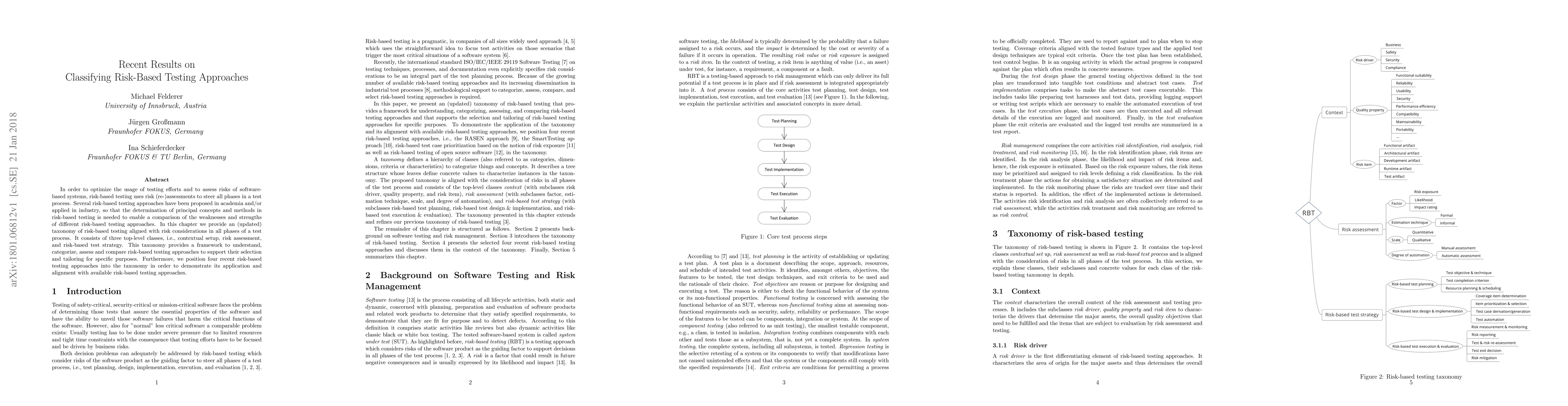 In order to optimize the usage of testing efforts and to assess risks of software-based systems, risk-based testing uses risk (re-)assessments to steer all phases in a test process. Several risk-based testing approaches have been proposed in academia and/or applied in industry, so that the determination of principal concepts and methods in risk-based testing is needed to enable a comparison of the weaknesses and strengths of different risk-based testing approaches. In this chapter we provide an (updated) taxonomy of risk-based testing aligned with risk considerations in all phases of a test process. It consists of three top-level classes, i.e., contextual setup, risk assessment, and risk-based test strategy. This taxonomy provides a framework to understand, categorize, assess and compare risk-based testing approaches to support their selection and tailoring for specific purposes. Furthermore, we position four recent risk-based testing approaches into the taxonomy in order to demonstrate its application and alignment with available risk-based testing approaches.