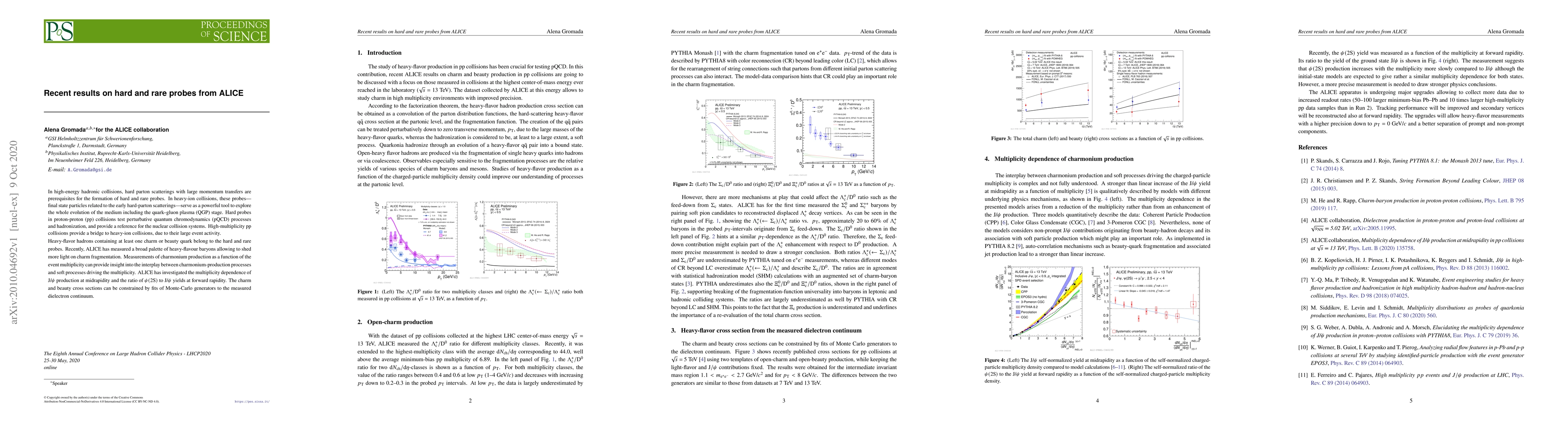 In high-energy hadronic collisions, hard parton scatterings with large momentum transfers are prerequisites for the formation of hard and rare probes. In heavy-ion collisions, these probes---final state particles related to the early hard-parton scatterings---serve as a powerful tool to explore the whole evolution of the medium including the quark--gluon plasma (QGP) stage. Hard probes in proton-proton (pp) collisions test perturbative quantum chromodynamics (pQCD) processes and hadronization, and provide a reference for the nuclear collision systems. High-multiplicity pp collisions provide a bridge to heavy-ion collisions, due to their large event activity. Heavy-flavor hadrons containing at least one charm or beauty quark belong to the hard and rare probes. Recently, ALICE has measured a broad palette of heavy-flavour baryons allowing to shed more light on charm fragmentation. Measurements of charmonium production as a function of the event multiplicity can provide insight into the interplay between charmonium-production processes and soft processes driving the multiplicity. ALICE has investigated the multiplicity dependence of J/$\psi$ production at midrapidity and the ratio of $\psi \rm (2S)$ to J/$\psi$ yields at forward rapidity. The charm and beauty cross sections can be constrained by fits of Monte-Carlo generators to the measured dielectron continuum.
