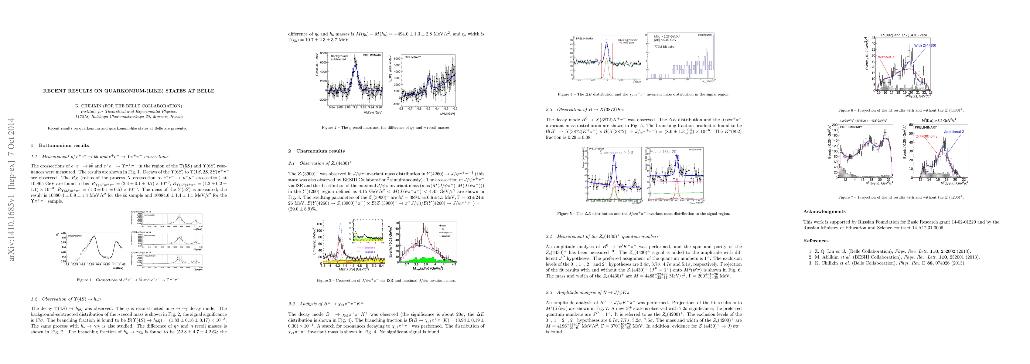 Summary: Recent findings from the Belle experiment on quarkonium and quarkonium-like states are reported, providing new insights into their properties and interactions. These results contribute to the broader understanding of heavy quark dynamics.