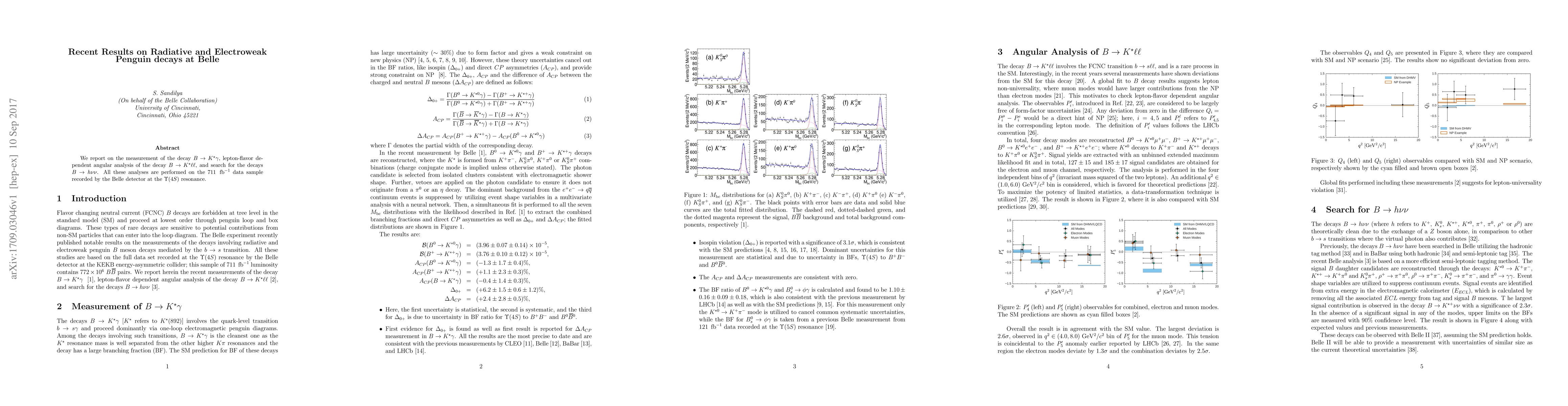 We report on the measurement of the decay $B\to K^{\star}\gamma$, lepton-flavor dependent angular analysis of the decay $B\to K^{\star}\ell\ell$, and search for the decays $B\to h\nu\nu$. All these analyses are performed on the 711 $fb^{-1}$ data sample recorded by the Belle detector at the $\Upsilon(4S)$ resonance.