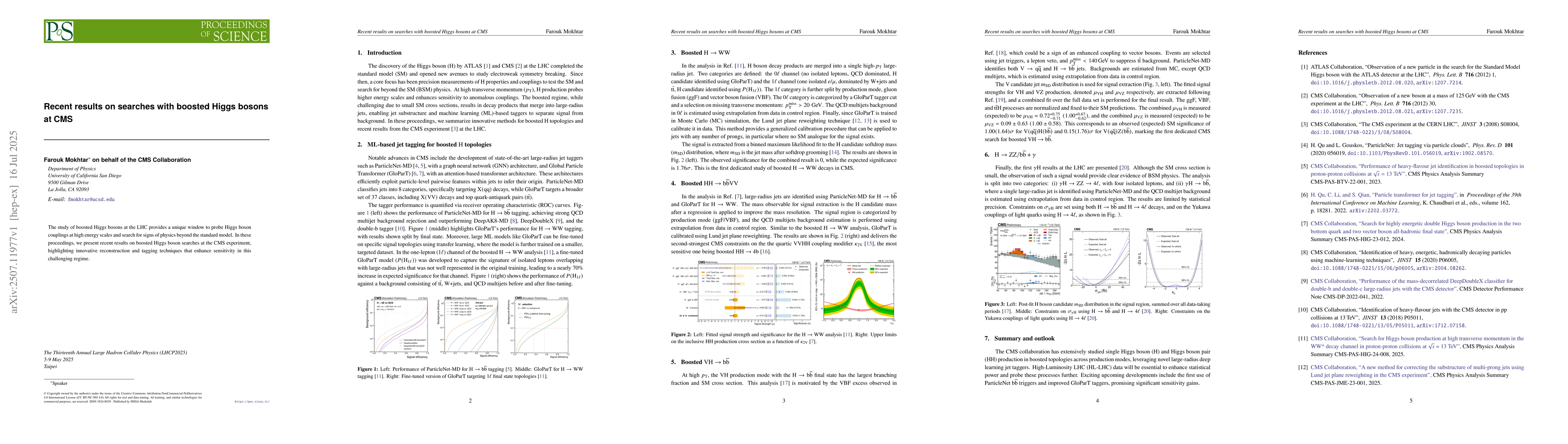 The study of boosted Higgs bosons at the LHC provides a unique window to probe Higgs boson couplings at high energy scales and search for signs of physics beyond the standard model. In these proceedings, we present recent results on boosted Higgs boson searches at the CMS experiment, highlighting innovative reconstruction and tagging techniques that enhance sensitivity in this challenging regime.