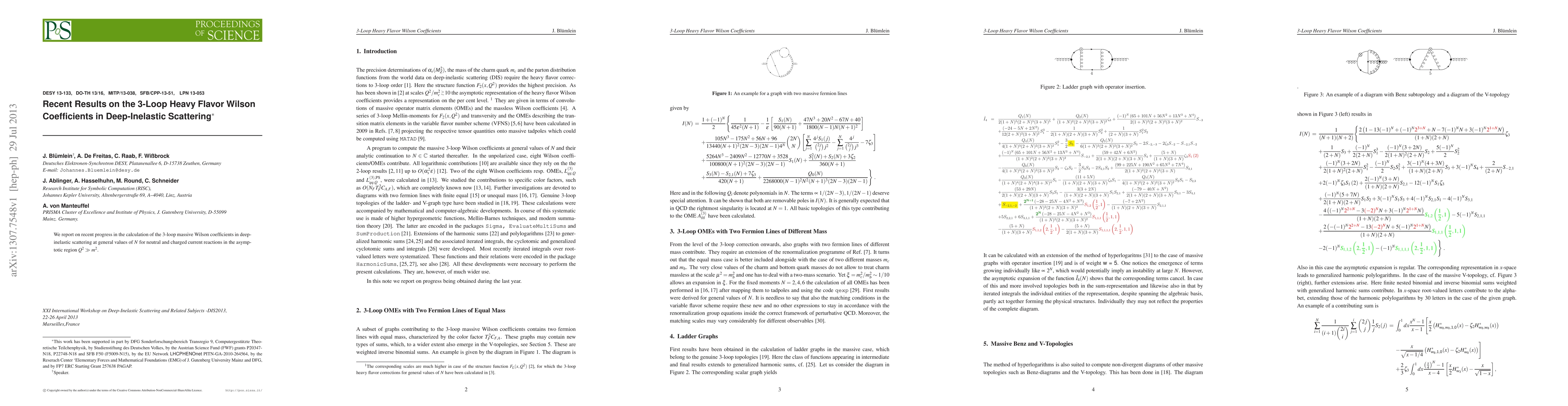 We report on recent progress in the calculation of the 3-loop massive Wilson coefficients in deep-inelastic scattering at general values of $N$ for neutral and charged current reactions in the asymptotic region $Q^2 \gg m^2$.