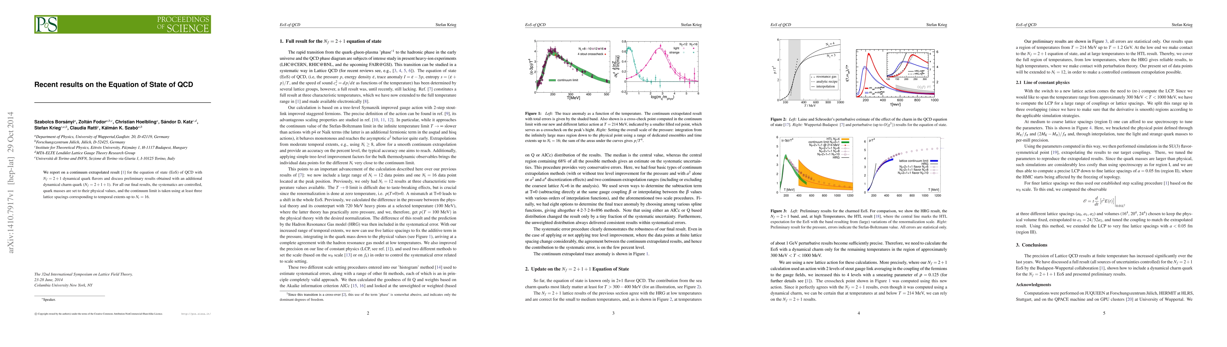 We report on a continuum extrapolated result (arXiv:1309.5258) for the equation of state (EoS) of QCD with $N_f=2+1$ dynamical quark flavors and discuss preliminary results obtained with an additional dynamical charm quark ($N_f=2+1+1$). For all our final results, the systematics are controlled, quark masses are set to their physical values, and the continuum limit is taken using at least three lattice spacings corresponding to temporal extents up to $N_t=16$.