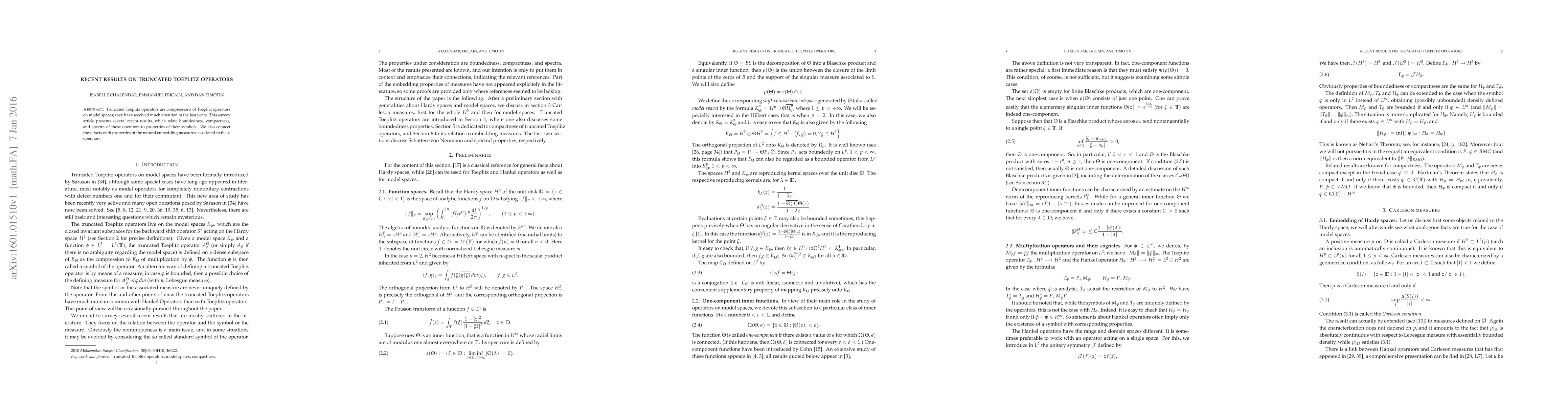 This survey article presents recent results on truncated Toeplitz operators, connecting their boundedness, compactness, spectra to properties of their symbols and natural embedding measures.
