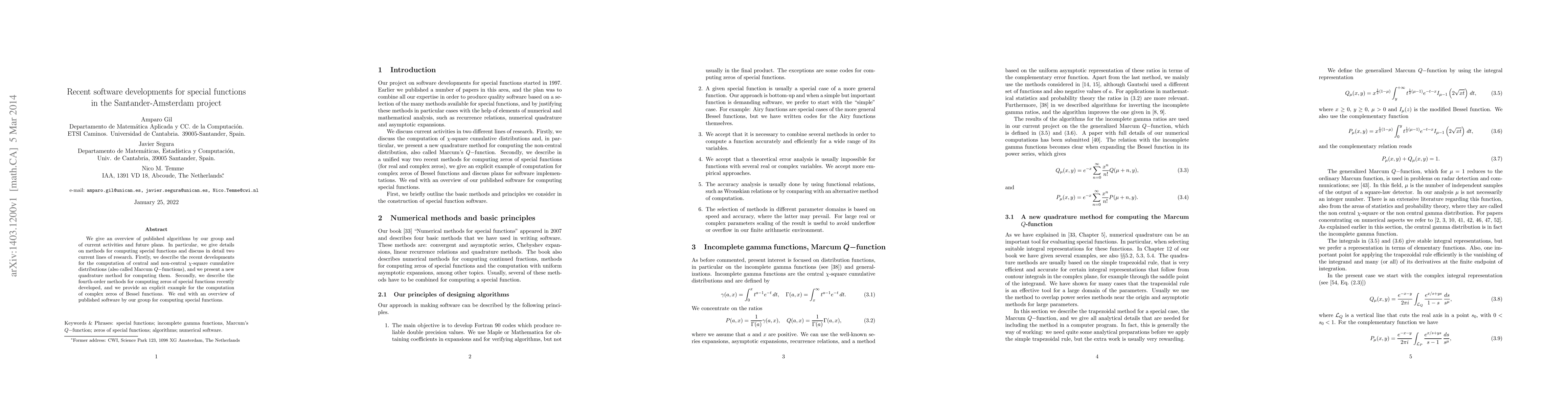 We give an overview of published algorithms by our group and of current activities and future plans. In particular, we give details on methods for computing special functions and discuss in detail two current lines of research. Firstly, we describe the recent developments for the computation of central and non-central chi-square cumulative distributions (also called Marcum Q-functions), and we present a new quadrature method for computing them. Secondly, we describe the fourth-order methods for computing zeros of special functions recently developed, and we provide an explicit example for the computation of complex zeros of Bessel functions. We end with an overview of published software by our group for computing special functions.
