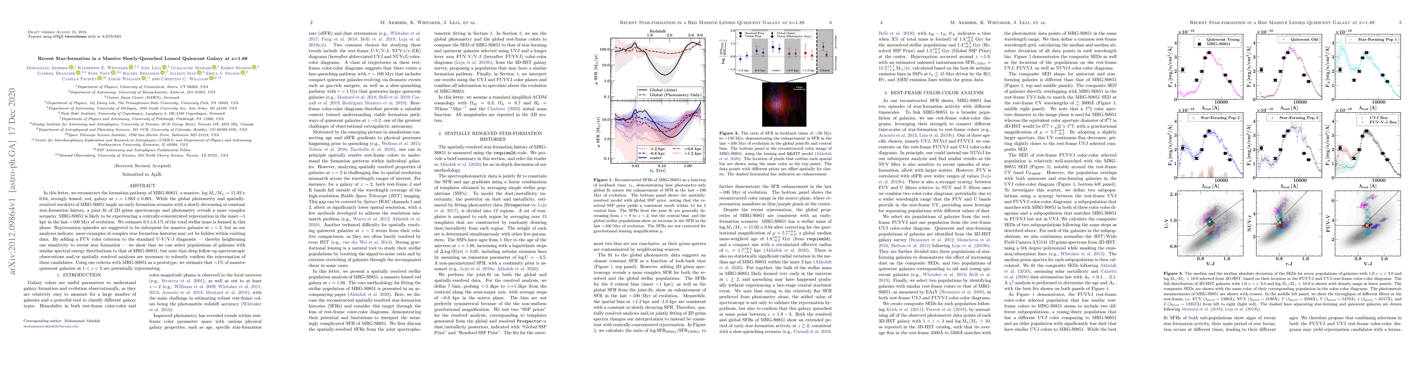 This paper investigates MRG-S0851, a massive, lensed quiescent galaxy at z=1.88, revealing a recent star-formation rejuvenation in its inner region despite a slowly-quenched global history. The study suggests that such rejuvenation episodes may be more common than previously thought among massive galaxies at z~2.