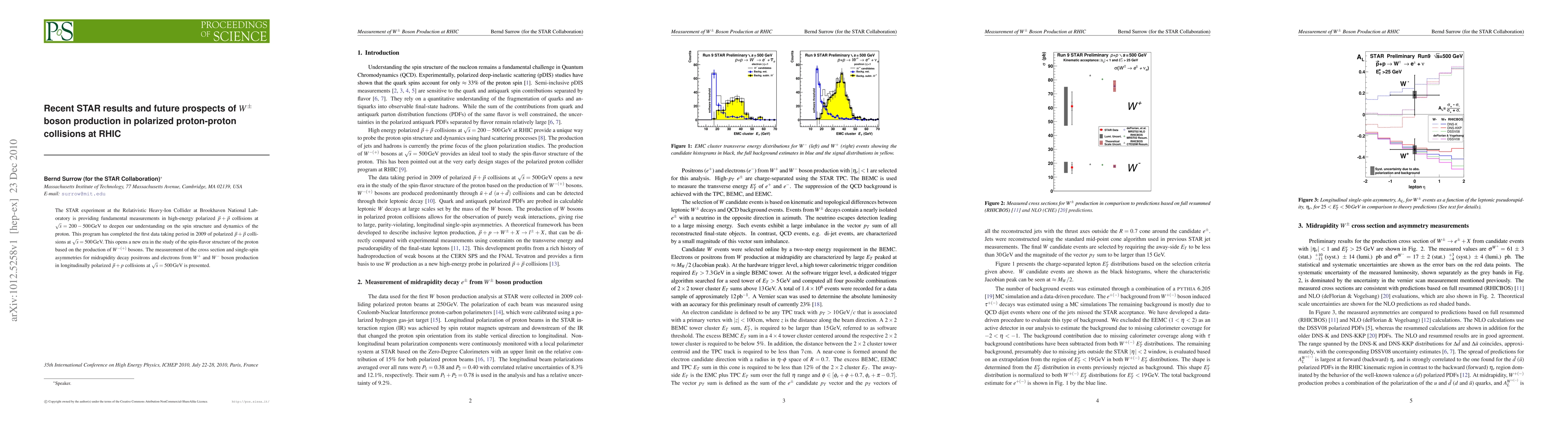 The STAR experiment at RHIC reports on the first data from polarized proton-proton collisions at 500 GeV, focusing on $W^{\pm}$ boson production to study the proton's spin structure and dynamics. The results include cross section measurements and single-spin asymmetries for midrapidity decay positrons and electrons.