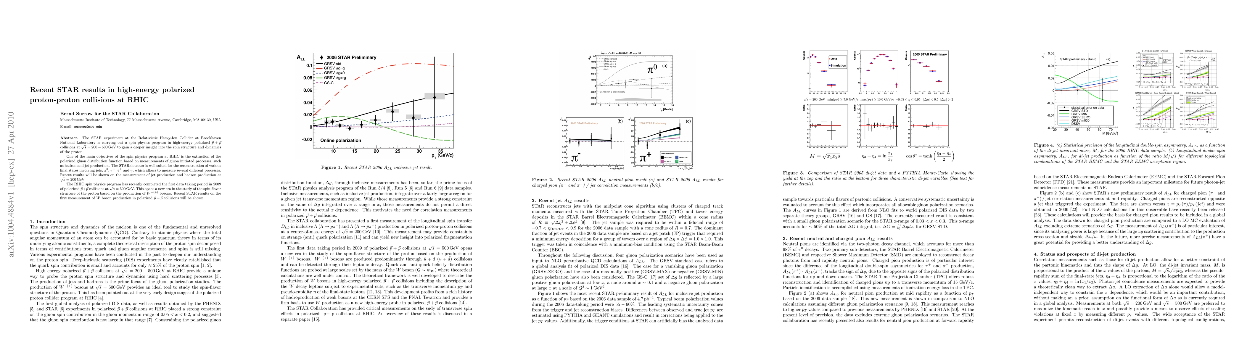 The STAR experiment at RHIC investigates the spin structure of the proton through high-energy polarized proton-proton collisions, focusing on extracting the polarized gluon distribution function. Recent results include measurements of jet and hadron production at $\sqrt{s}=200\,$GeV and the first observation of $W$ boson production in polarized collisions at $\sqrt{s}=500\,$GeV.
