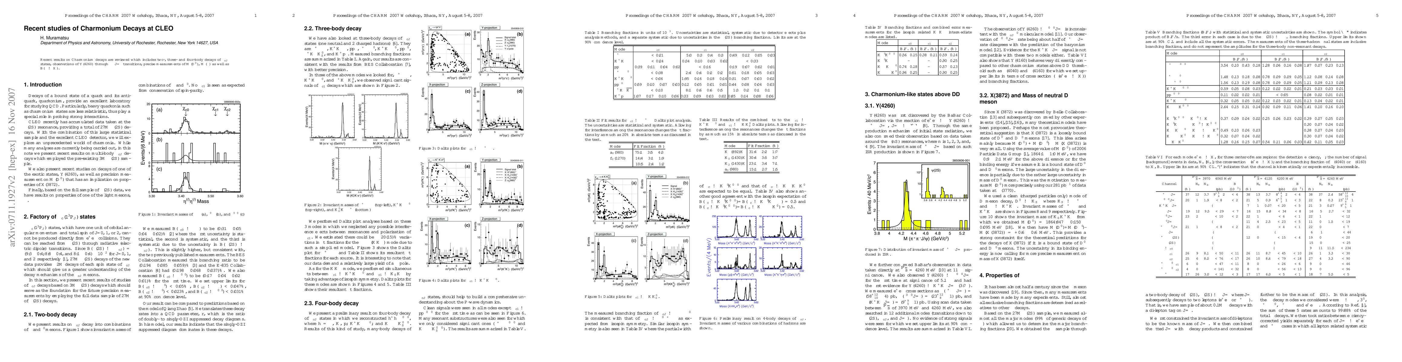 The research utilized data from the CLEO experiment to study Charmonium decays, including two-, three-, and four-body decays of χcJ states, observations of Y(4260) through ππJ/ψ transitions, and precise measurements of M(D0), M(η), and B(η→X).