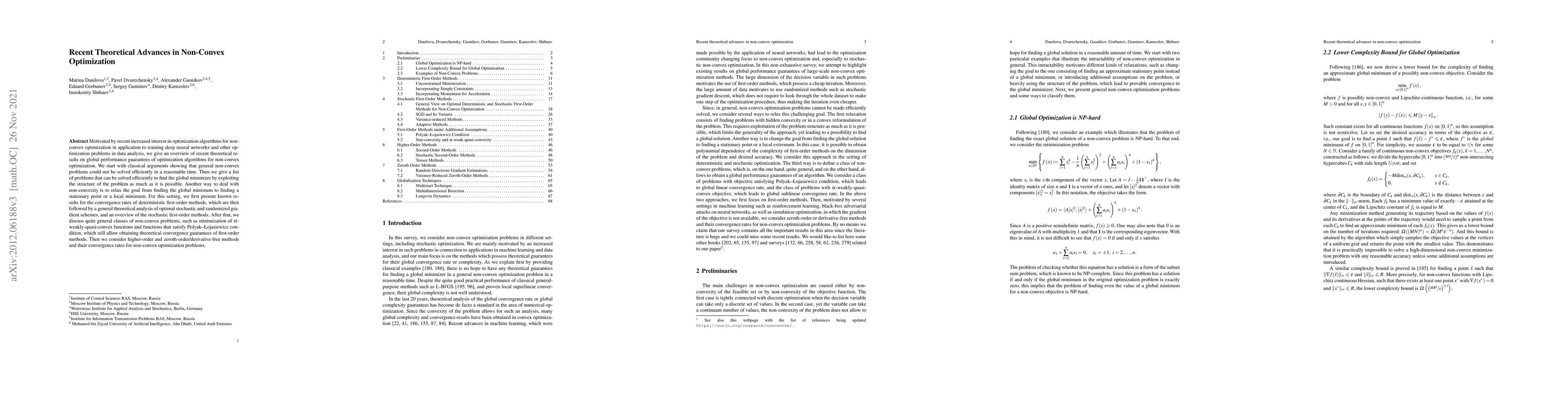 This paper discusses recent advances in non-convex optimization, focusing on theoretical guarantees for optimization algorithms used in machine learning and data analysis. It highlights key findings on efficient solving methods, convergence rates, and implications for the development of new algorithms.