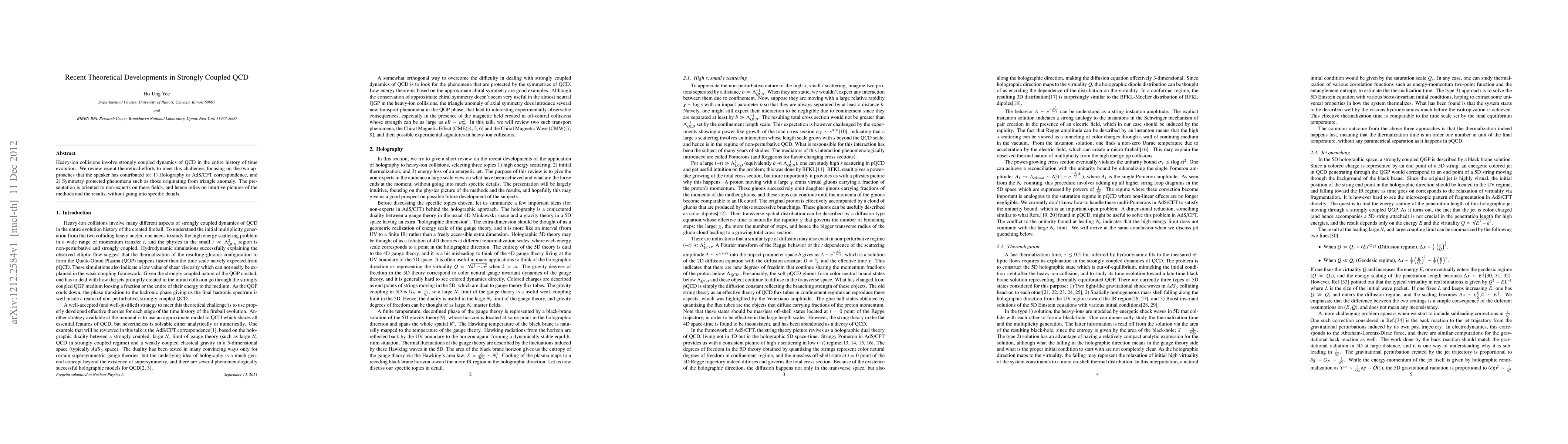Heavy-ion collisions involve strongly coupled dynamics of QCD in the entire history of time evolution. We review recent theoretical efforts to meet this challenge, focusing on the two approaches that the speaker has contributed to: 1) Holography or AdS/CFT correspondence, and 2) Symmetry protected phenomena such as those originating from triangle anomaly. The presentation is oriented to non-experts on these fields, and hence relies on intuitive pictures of the methods and the results, without going into specific details.