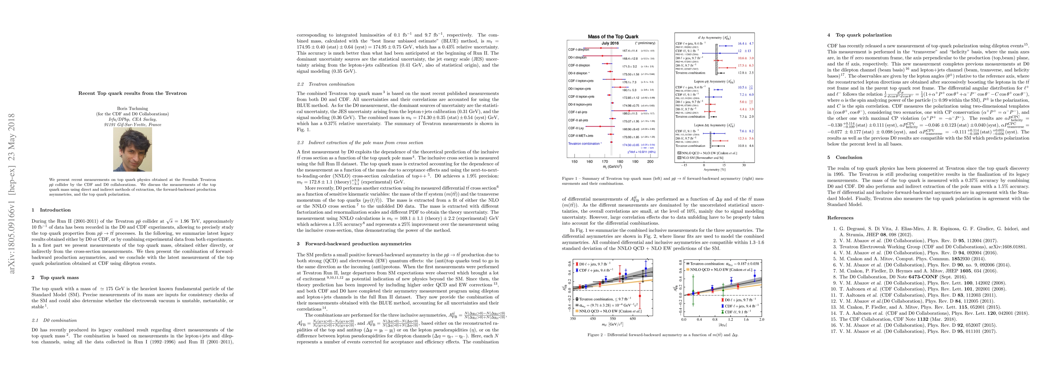 This paper summarizes recent findings from the Tevatron collider on top quark physics by the CDF and D0 collaborations, focusing on the top quark mass measurements via direct and indirect methods, forward-backward production asymmetries, and top quark polarization.