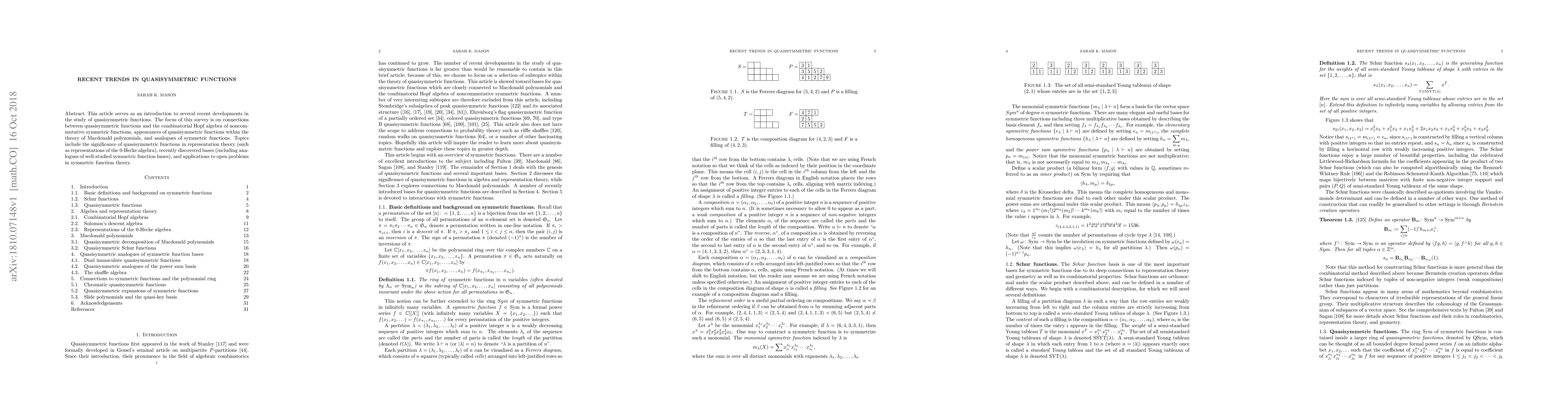 This survey introduces recent advancements in quasisymmetric functions, emphasizing their connections to noncommutative symmetric functions and Macdonald polynomials, and explores their roles in representation theory and new bases for symmetric function theory.