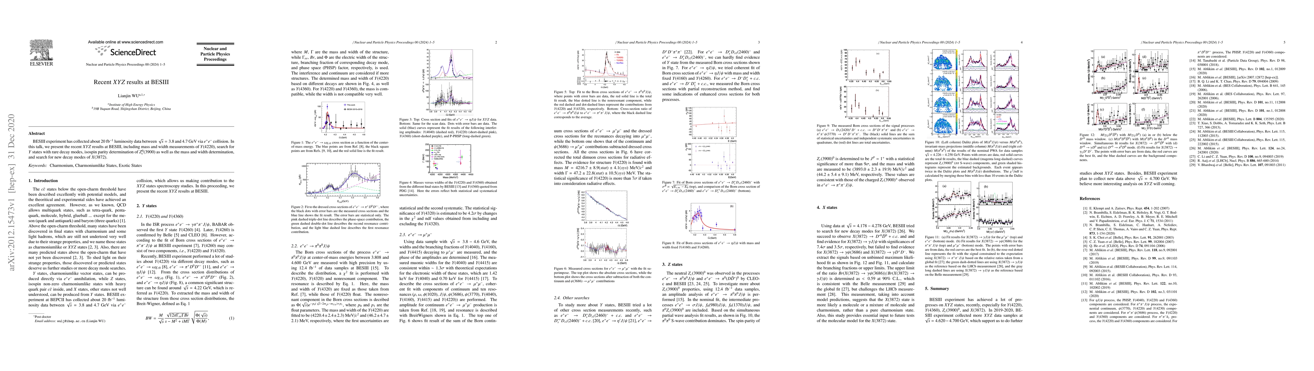 BESIII experiment has collected about 20 fb$^{-1}$ luminosity data between $\sqrt{s}=3.8$ and 4.7 GeV via $e^{+}e^{-}$ collision. In this talk, we present the recent $XYZ$ results at BESIII, including mass and width measurements of $Y(4220)$, search for $Y$ states with rare decay modes, isospin parity determination of $Z_{c}^{0}(3900)$ as well as the mass and width determination, and search for new decay modes of $X(3872)$.