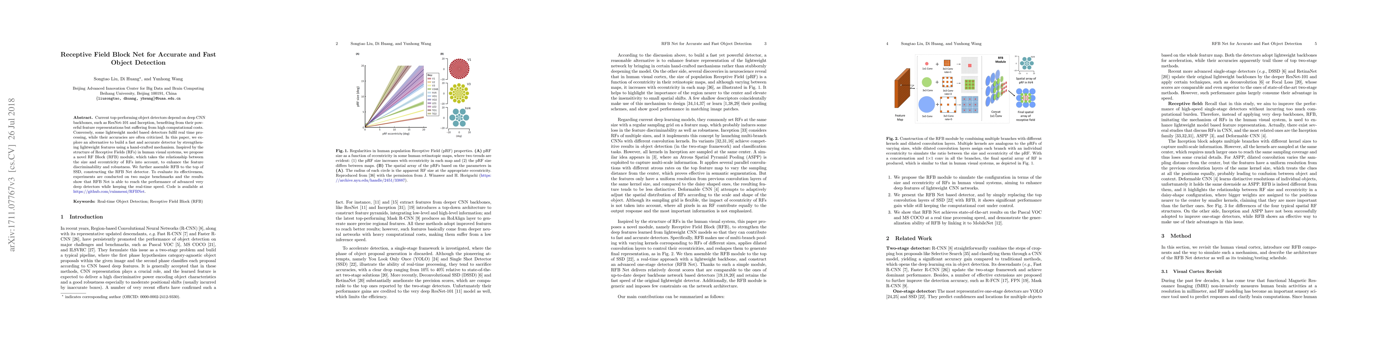 Researchers propose a novel object detection model called RFB Net that combines fast processing with accurate results, outperforming traditional deep CNN backbones while maintaining real-time speed.