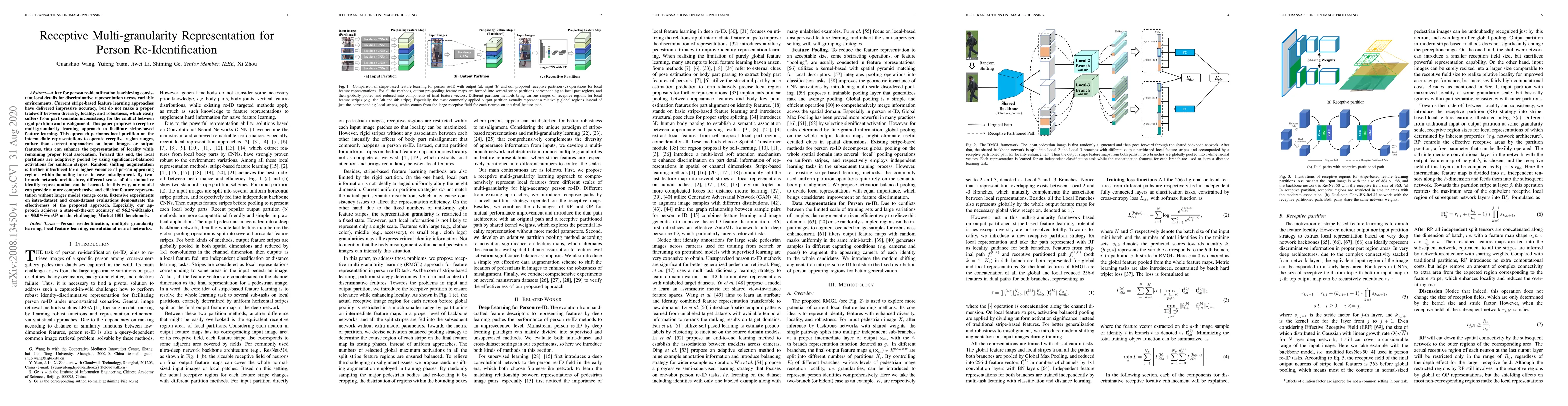A key for person re-identification is achieving consistent local details for discriminative representation across variable environments. Current stripe-based feature learning approaches have delivered impressive accuracy, but do not make a proper trade-off between diversity, locality, and robustness, which easily suffers from part semantic inconsistency for the conflict between rigid partition and misalignment. This paper proposes a receptive multi-granularity learning approach to facilitate stripe-based feature learning. This approach performs local partition on the intermediate representations to operate receptive region ranges, rather than current approaches on input images or output features, thus can enhance the representation of locality while remaining proper local association. Toward this end, the local partitions are adaptively pooled by using significance-balanced activations for uniform stripes. Random shifting augmentation is further introduced for a higher variance of person appearing regions within bounding boxes to ease misalignment. By two-branch network architecture, different scales of discriminative identity representation can be learned. In this way, our model can provide a more comprehensive and efficient feature representation without larger model storage costs. Extensive experiments on intra-dataset and cross-dataset evaluations demonstrate the effectiveness of the proposed approach. Especially, our approach achieves a state-of-the-art accuracy of 96.2%@Rank-1 or 90.0%@mAP on the challenging Market-1501 benchmark.