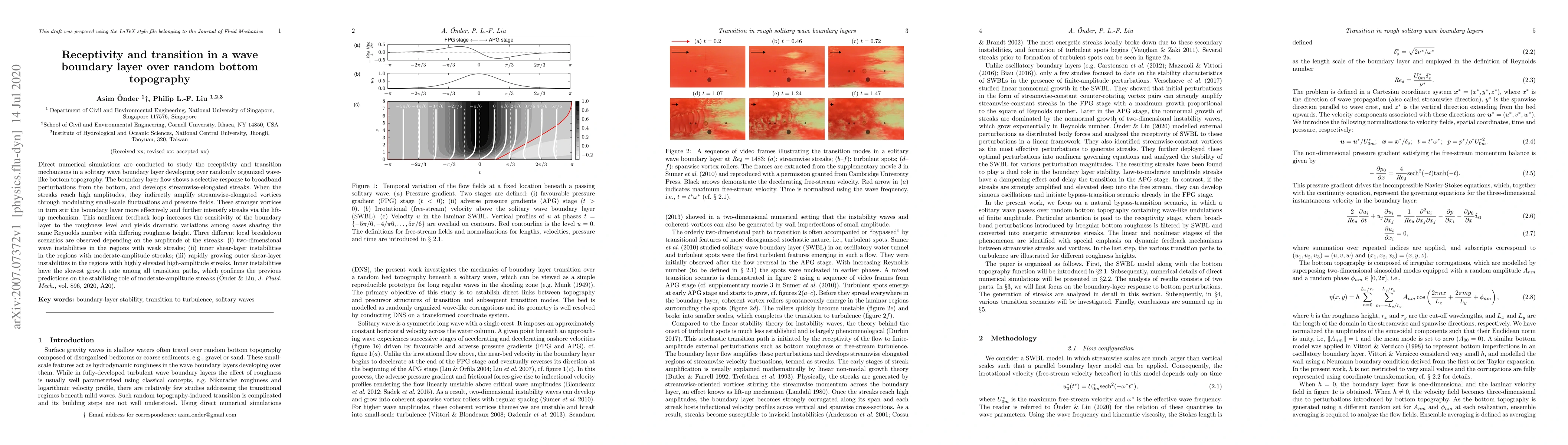 Direct numerical simulations show that a wave boundary layer developing over random bottom topography exhibits selective response to broadband perturbations and undergoes a nonlinear feedback loop leading to dramatic variations in transition mechanisms depending on roughness height.