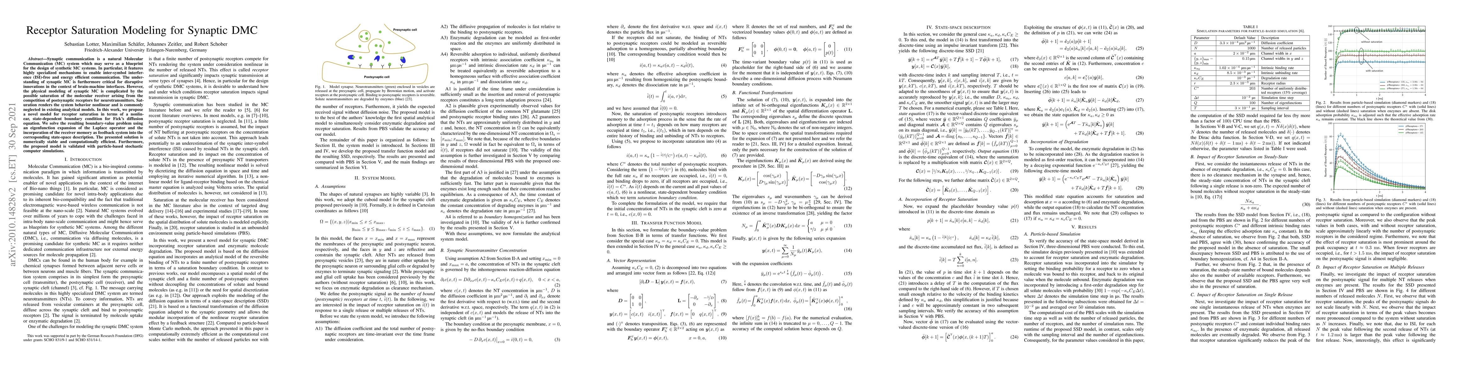 This paper proposes a novel model for receptor saturation in synaptic molecular communication, addressing the nonlinear behavior due to receptor competition. It utilizes a state-dependent boundary condition for Fick's diffusion equation and validates the model through particle-based stochastic simulations.