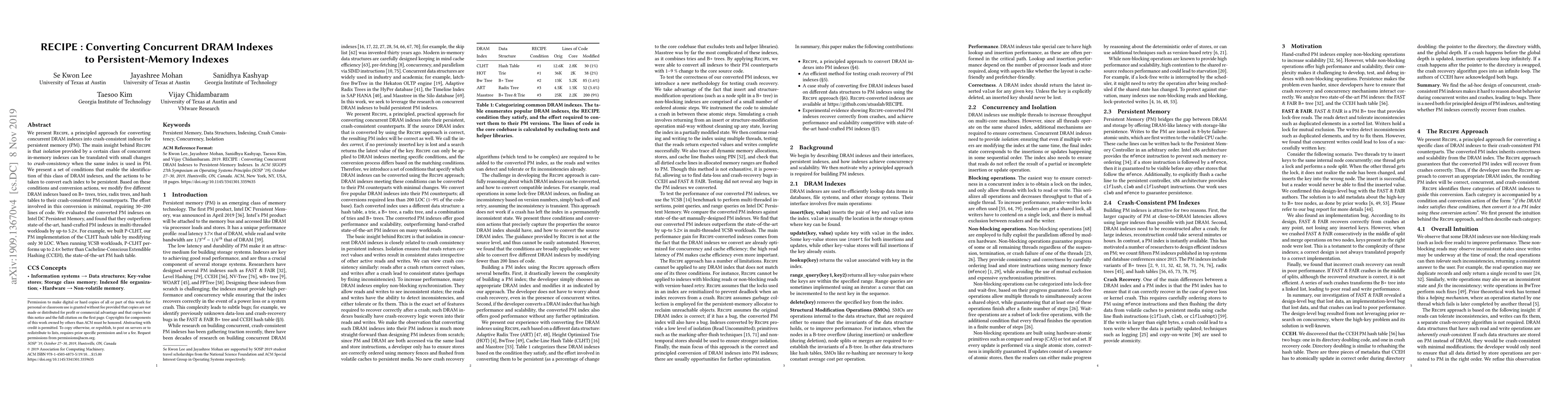 Recipe identifies conditions and conversion actions to transform concurrent DRAM indexes into crash-consistent PM indexes without requiring extensive modifications.