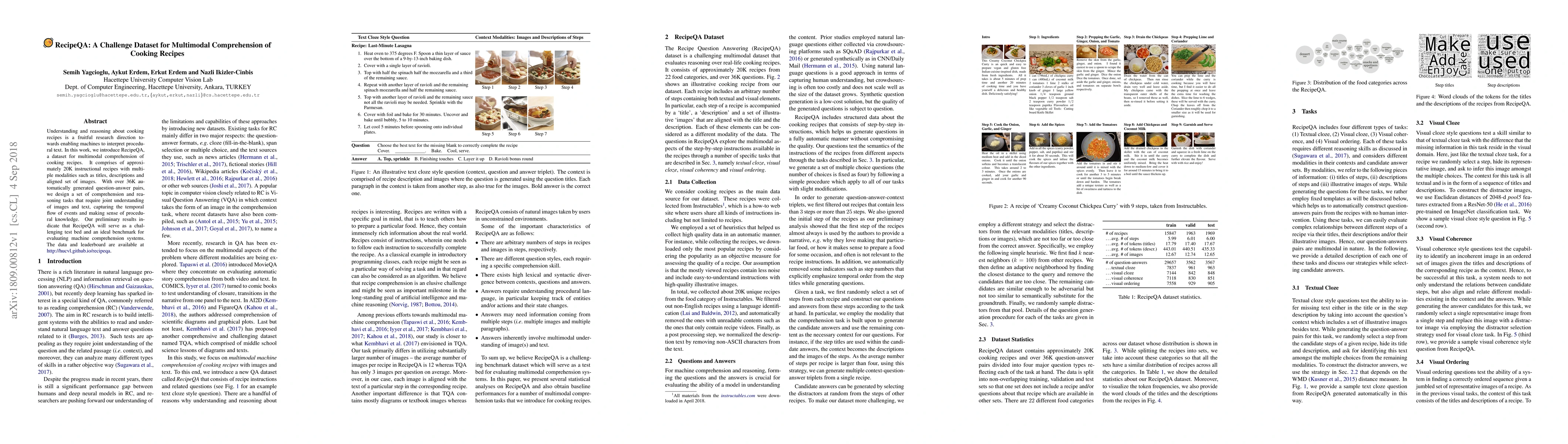 A new dataset called RecipeQA has been introduced to test machines' ability to understand cooking recipes through text and images, with promising results that could aid in developing more advanced machine comprehension systems.