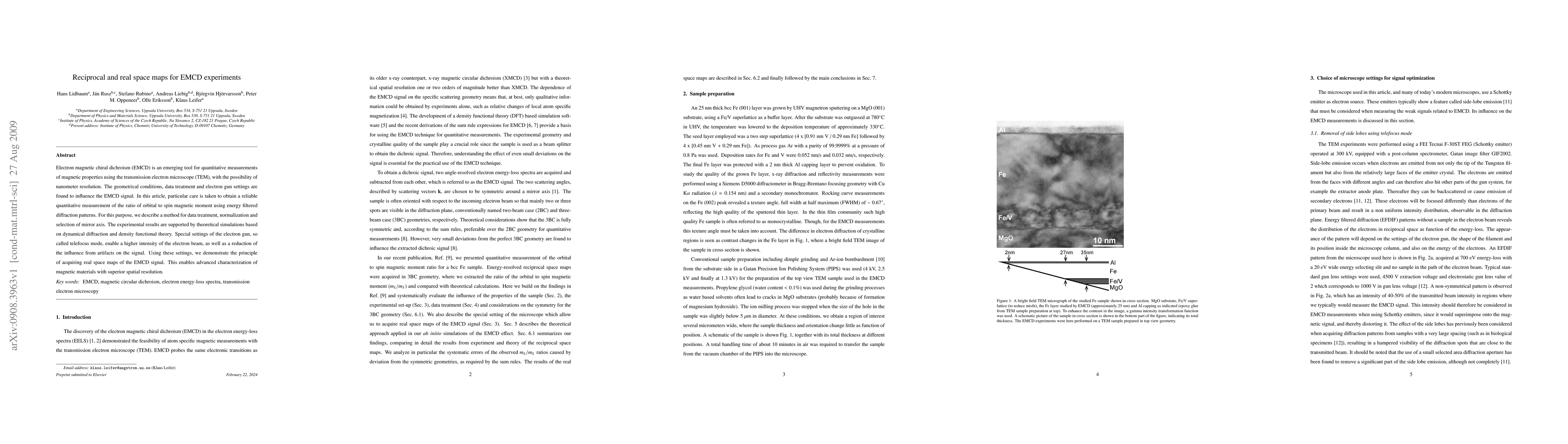 This paper presents a method for obtaining reliable quantitative measurements of magnetic properties using electron magnetic chiral dichroism (EMCD) in a transmission electron microscope. It details data treatment, normalization, and the use of telefocus mode to enhance signal intensity and reduce artifacts, enabling advanced characterization of magnetic materials with high spatial resolution.