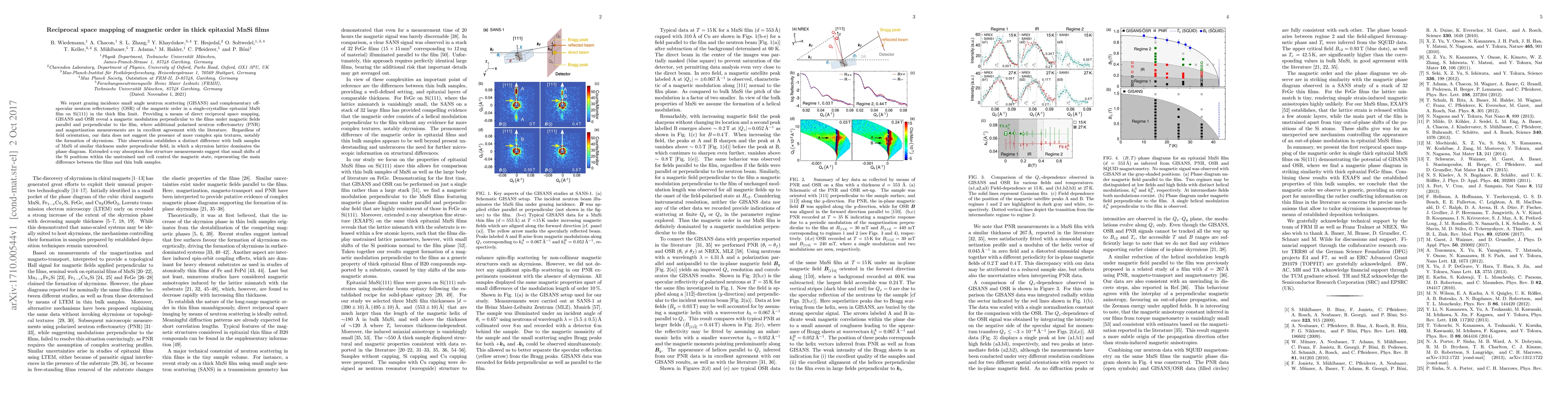 Researchers used neutron scattering techniques to study magnetic order in thick MnSi films on Si substrates, finding that they don't form skyrmions under magnetic fields, unlike bulk samples of similar thickness.
