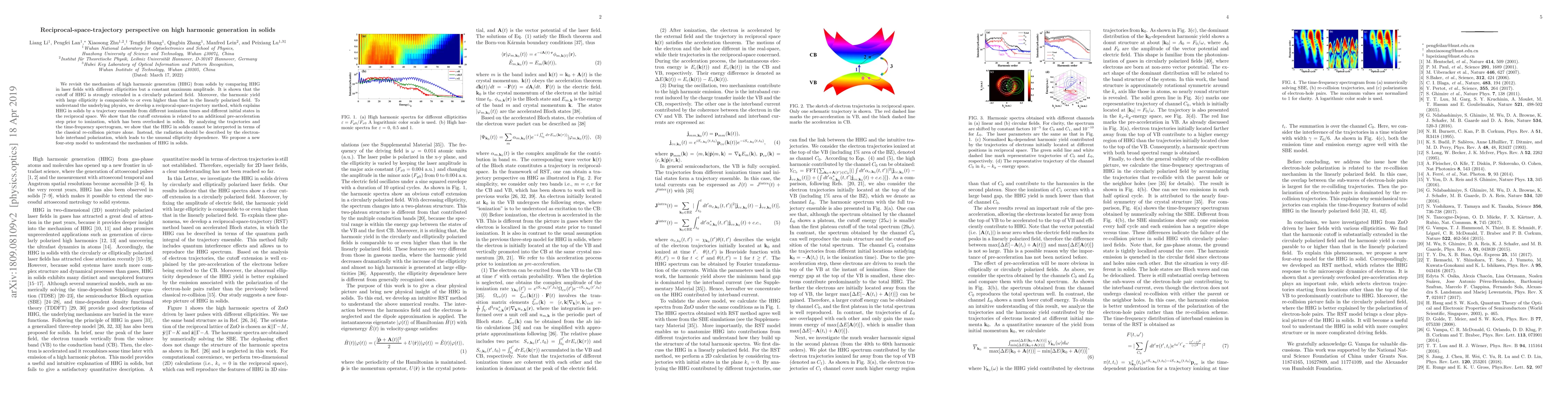 This study explores high harmonic generation (HHG) in solids under different laser field ellipticities, revealing extended cutoffs in circularly polarized fields and higher harmonic yields than linearly polarized fields. The authors introduce a reciprocal-space-trajectory method to explain these phenomena, proposing a four-step model that emphasizes the role of electron-hole interband polarization over the classical re-collision picture.