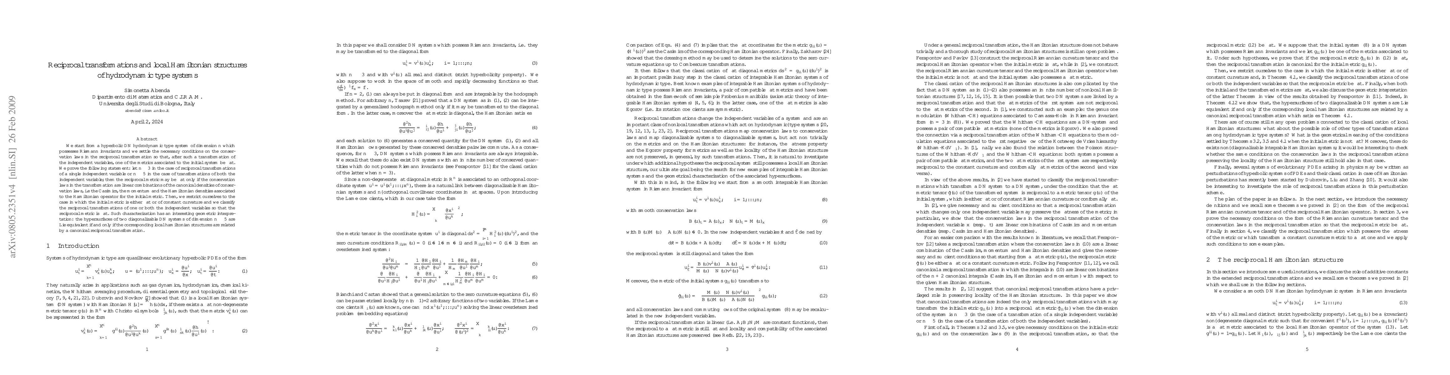 We start from a hyperbolic DN hydrodynamic type system of dimension $n$ which possesses Riemann invariants and we settle the necessary conditions on the conservation laws in the reciprocal transformation so that, after such a transformation of the independent variables, one of the metrics associated to the initial system be flat. We prove the following statement: let $n\ge 3$ in the case of reciprocal transformations of a single independent variable or $n\ge 5$ in the case of transformations of both the independent variable; then the reciprocal metric may be flat only if the conservation laws in the transformation are linear combinations of the canonical densities of conservation laws, {\it i.e} the Casimirs, the momentum and the Hamiltonian densities associated to the Hamiltonian operator for the initial metric. Then, we restrict ourselves to the case in which the initial metric is either flat or of constant curvature and we classify the reciprocal transformations of one or both the independent variables so that the reciprocal metric is flat. Such characterization has an interesting geometric interpretation: the hypersurfaces of two diagonalizable DN systems of dimension $n\ge 5$ are Lie equivalent if and only if the corresponding local hamiltonian structures are related by a canonical reciprocal transformation.