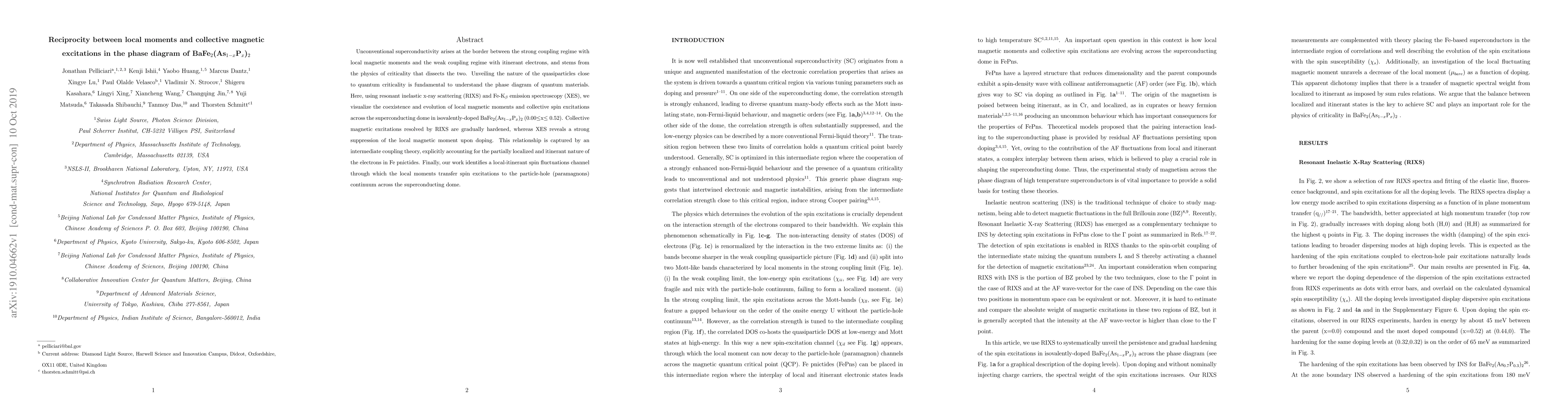 Unconventional superconductivity arises at the border between the strong coupling regime with local magnetic moments and the weak coupling regime with itinerant electrons, and stems from the physics of criticality that dissects the two. Unveiling the nature of the quasiparticles close to quantum criticality is fundamental to understand the phase diagram of quantum materials. Here, using resonant inelastic x-ray scattering (RIXS) and Fe-K$_\beta$ emission spectroscopy (XES), we visualize the coexistence and evolution of local magnetic moments and collective spin excitations across the superconducting dome in isovalently-doped BaFe$_2$(As$_{1-x}$P$_x$)$_2$ (0.00$\leq$x$\leq0.$52). Collective magnetic excitations resolved by RIXS are gradually hardened, whereas XES reveals a strong suppression of the local magnetic moment upon doping. This relationship is captured by an intermediate coupling theory, explicitly accounting for the partially localized and itinerant nature of the electrons in Fe pnictides. Finally, our work identifies a local-itinerant spin fluctuations channel through which the local moments transfer spin excitations to the particle-hole (paramagnons) continuum across the superconducting dome.